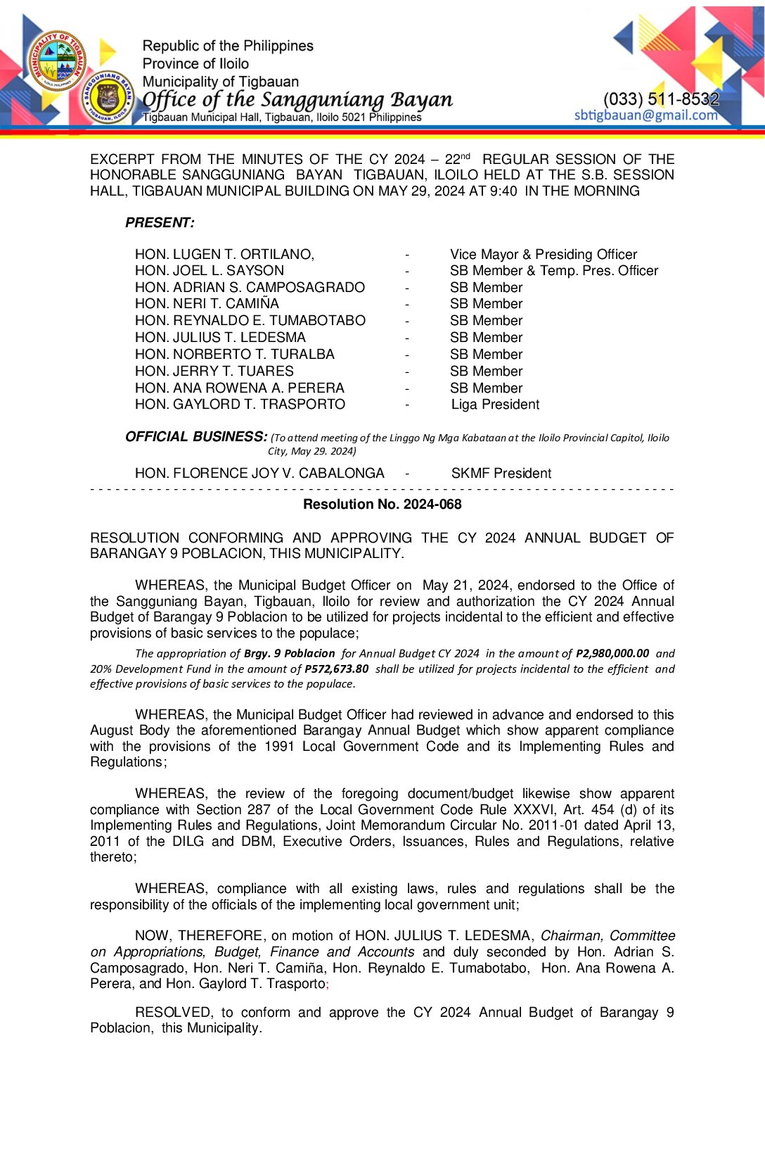 Resolution No. 2024-068