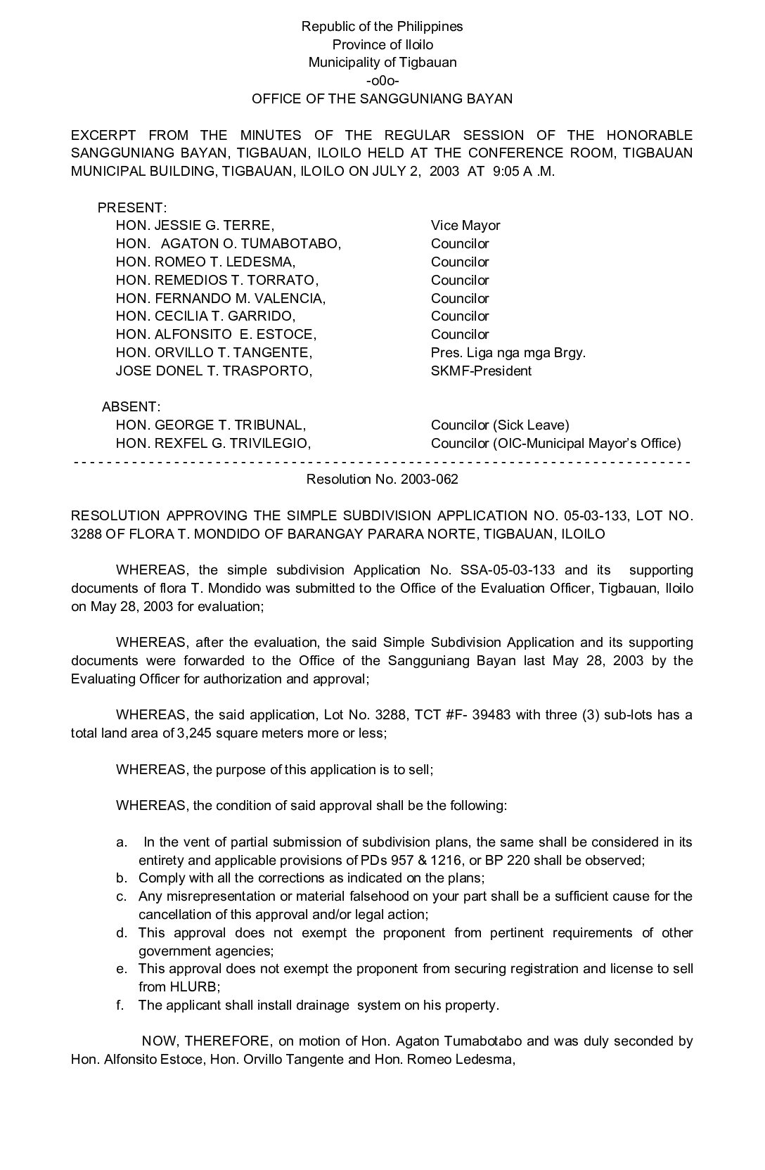 Resolution No. 2003-062