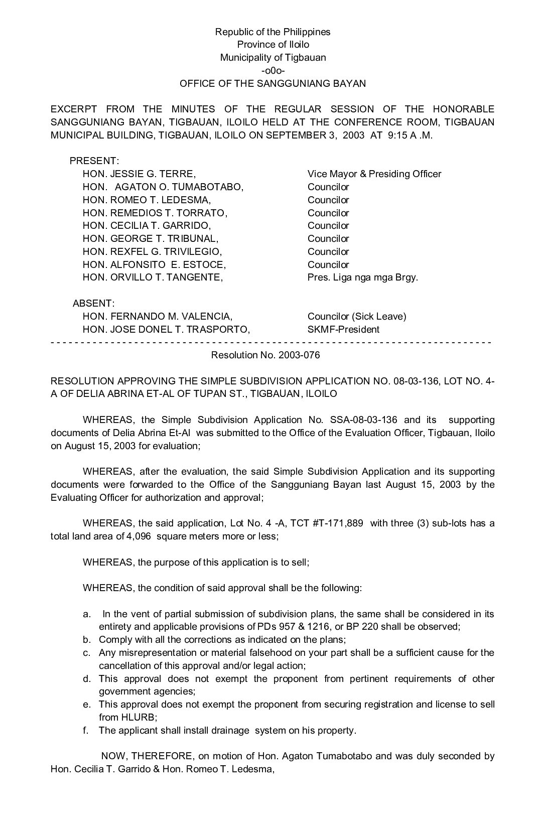 Resolution No. 2003-076