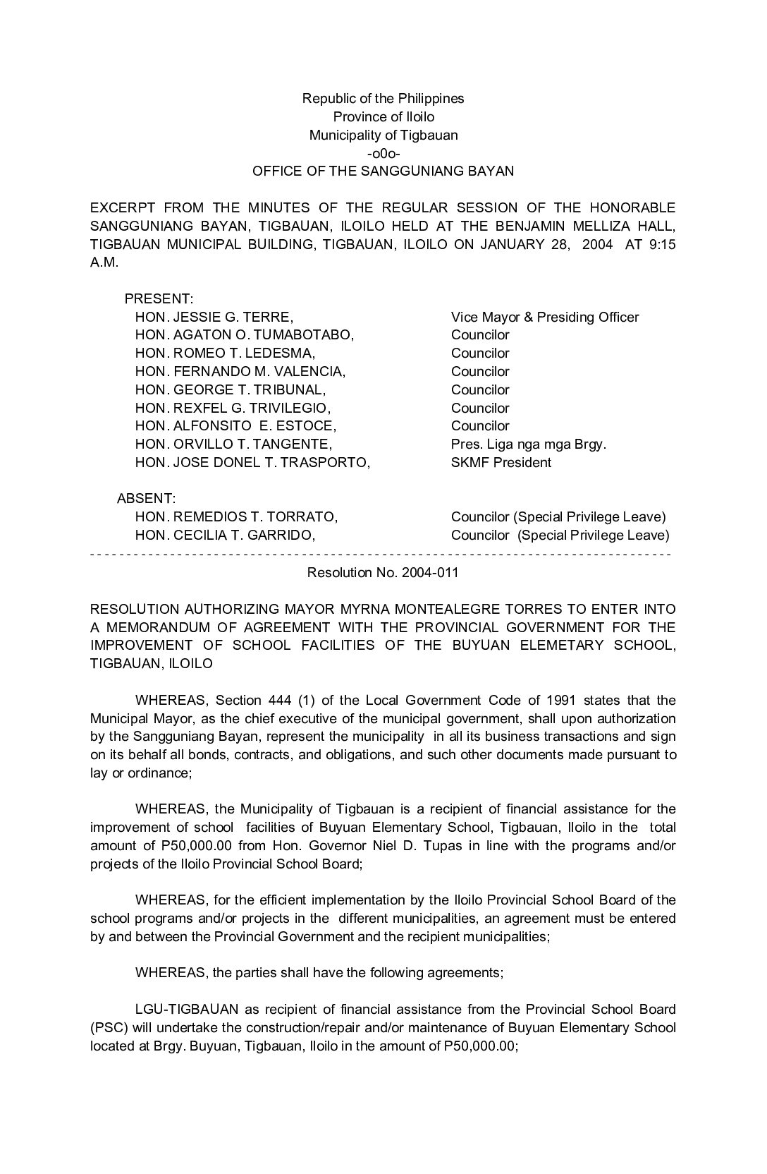 Resolution No. 2004-011