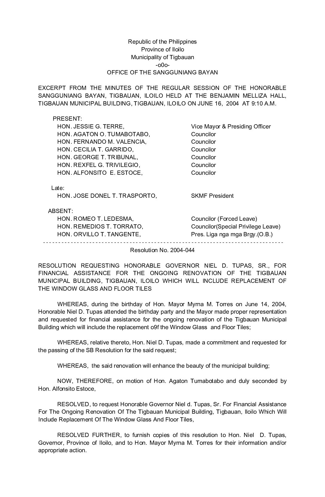 Resolution No. 2004-002