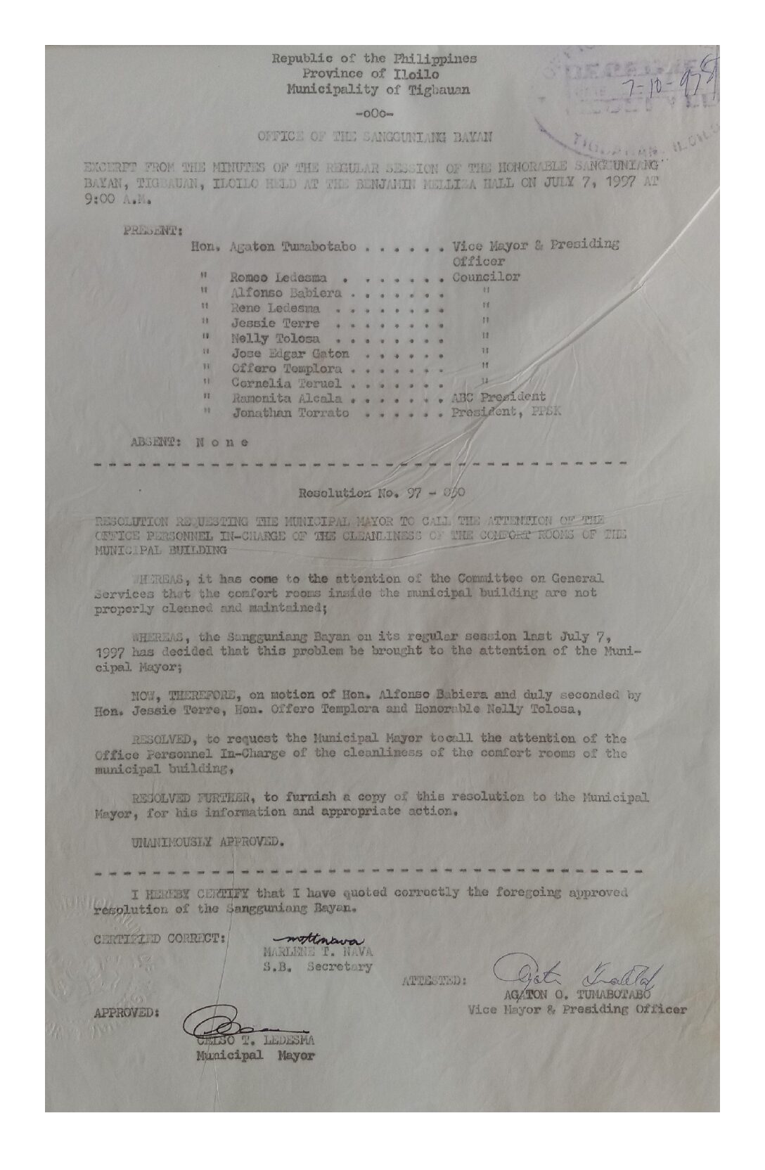 Resolution No. 97-030