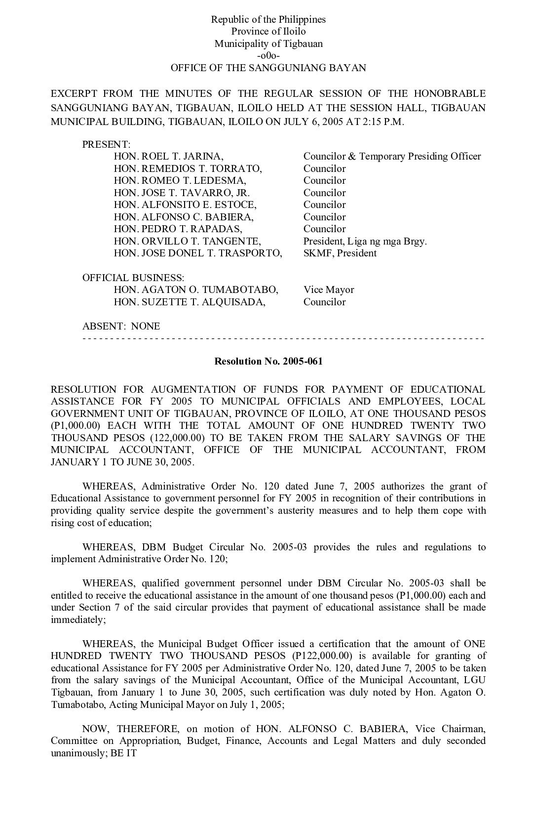 Resolution No. 2005-061