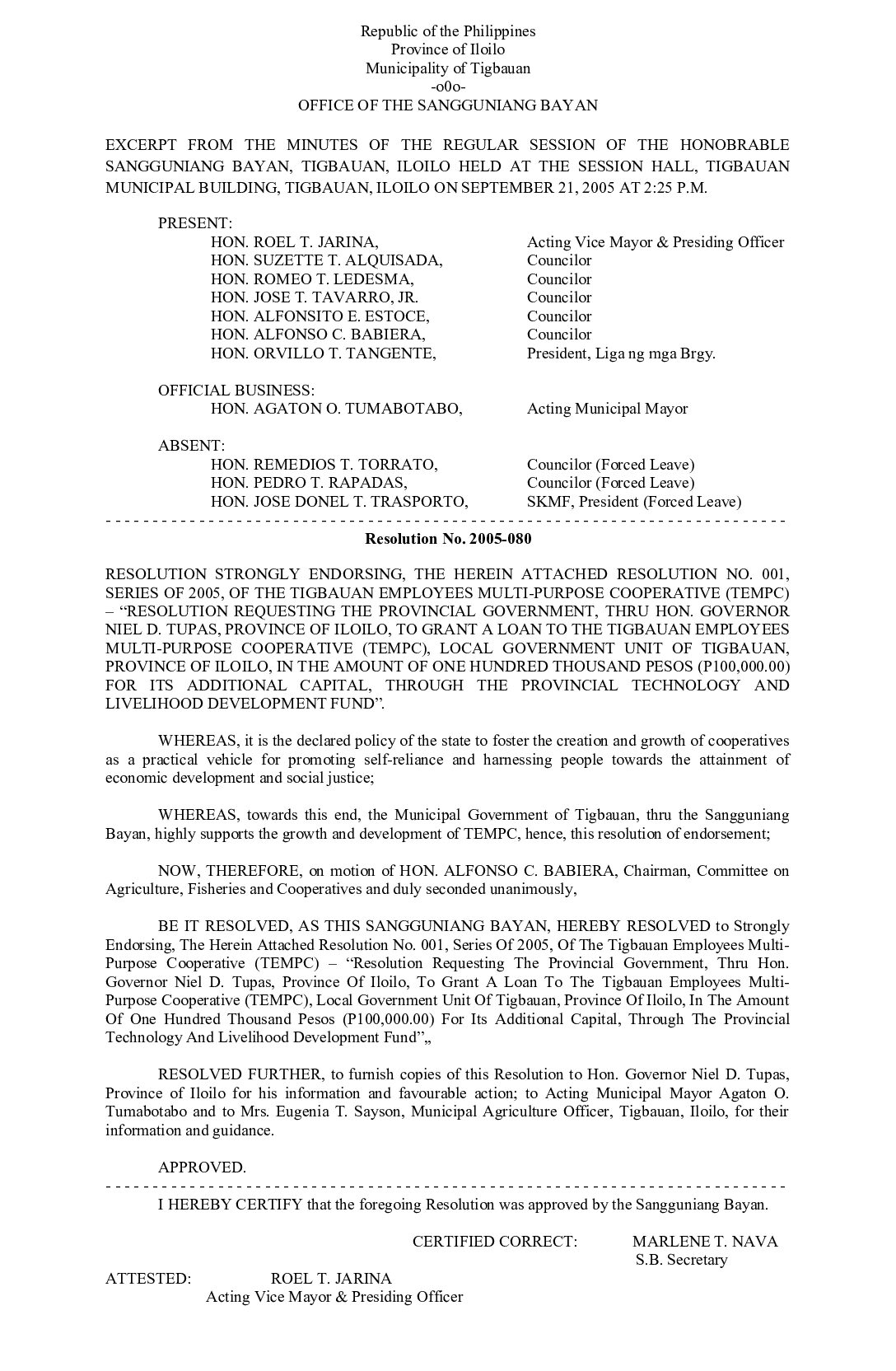 Resolution No. 2005-080