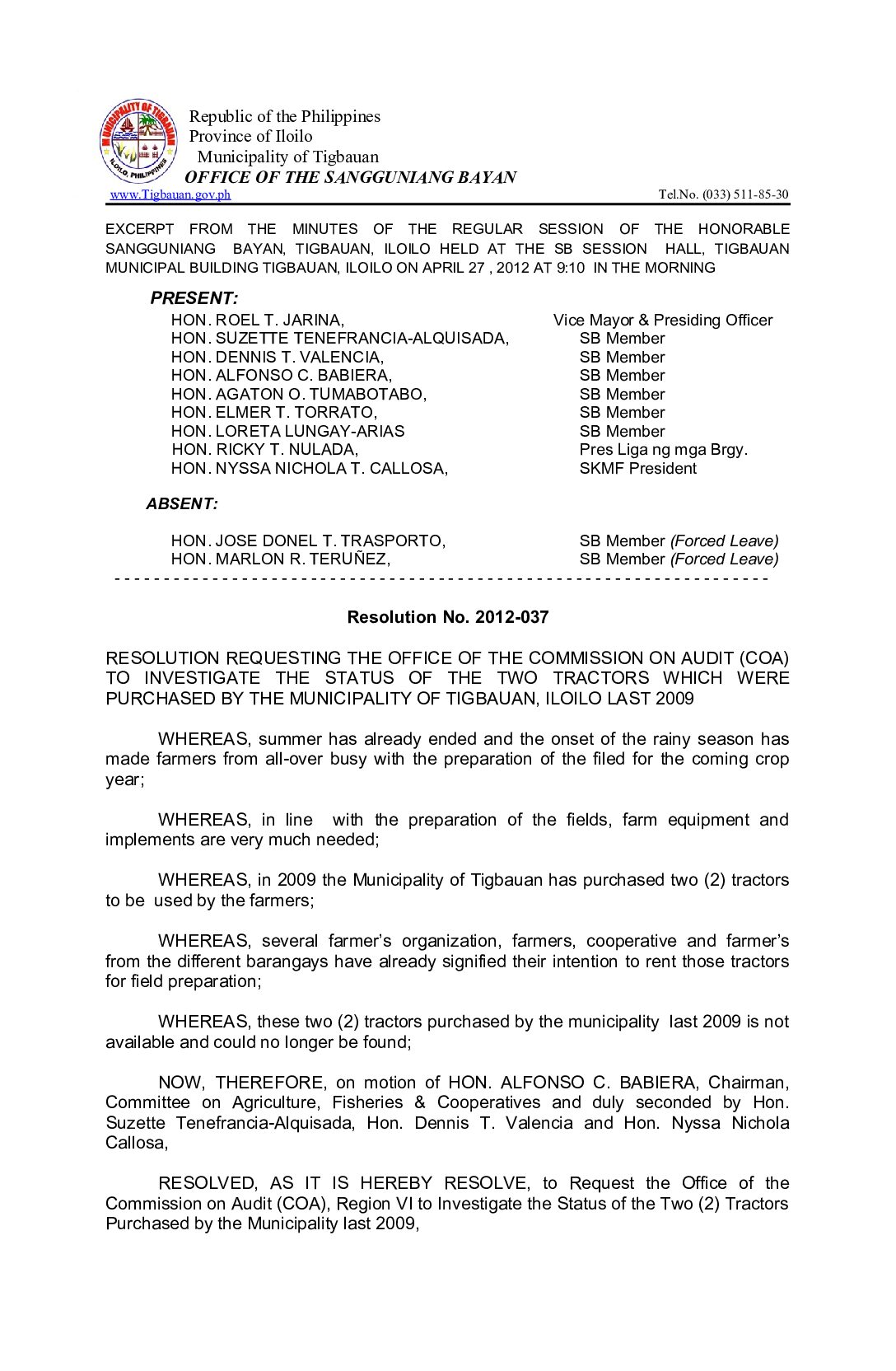 Resolution No. 2012-037