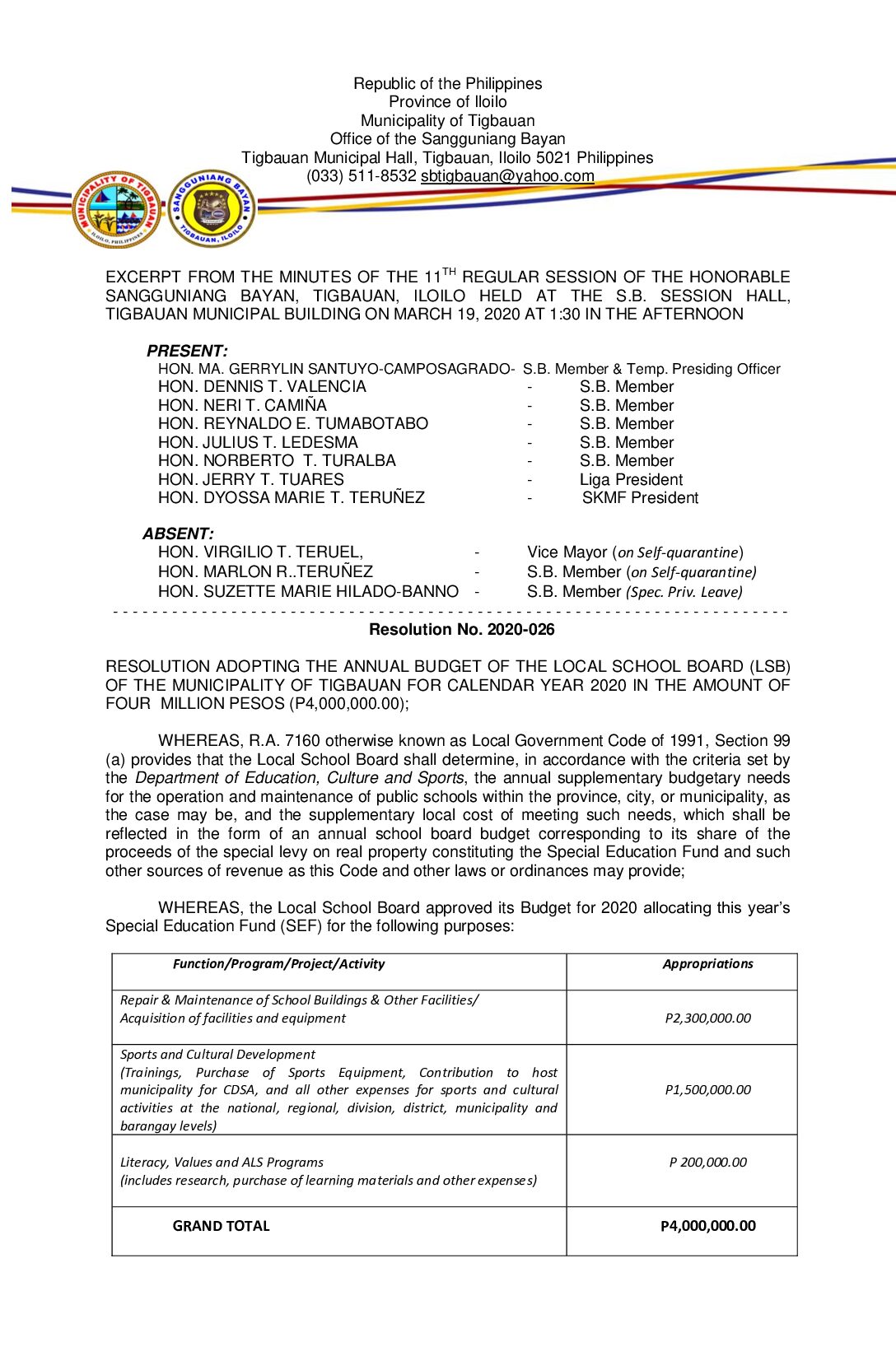 Resolution No. 2020-026