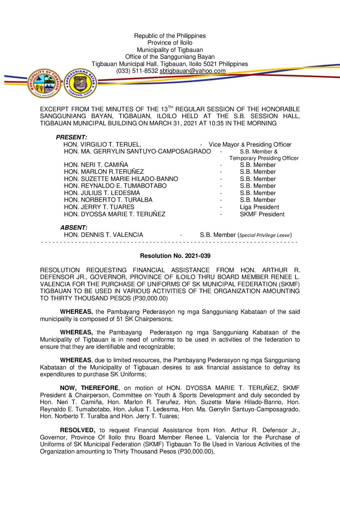 Resolution No. 2021-039