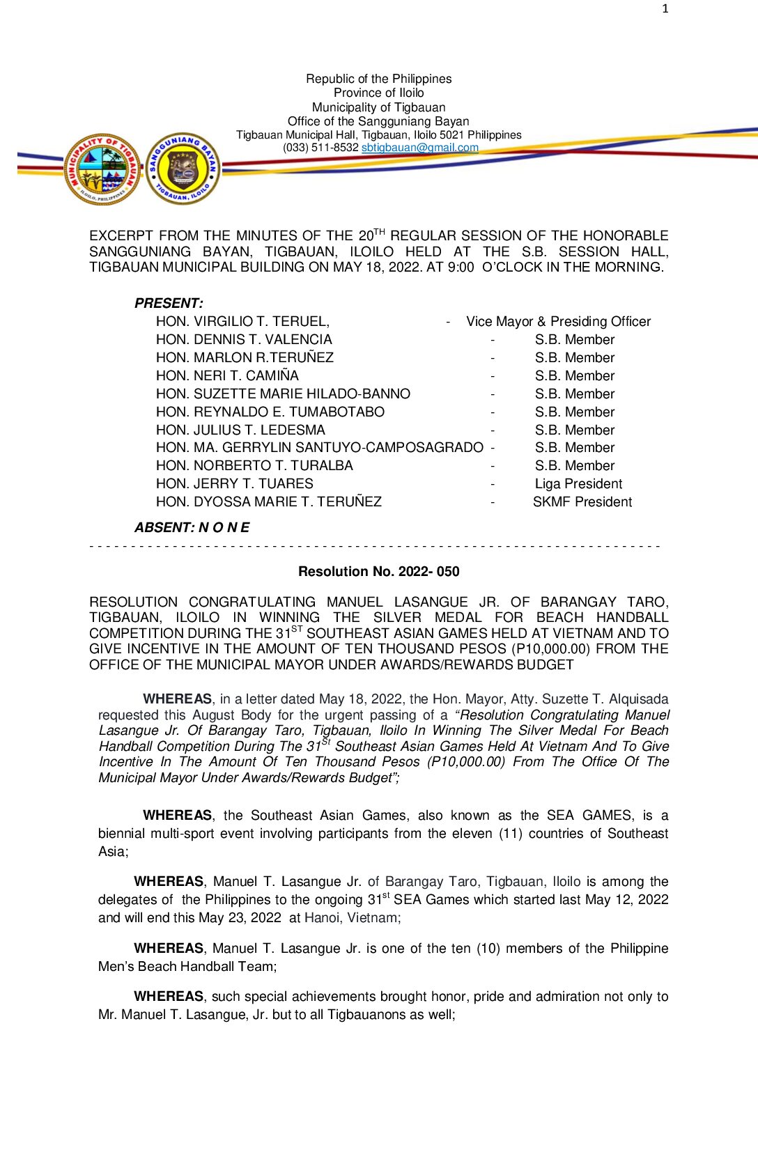 Resolution No. 2022-050