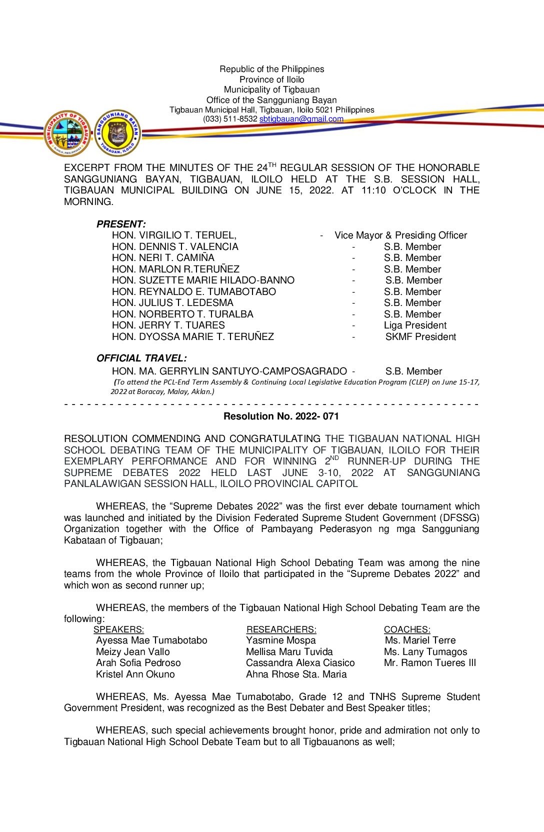 Resolution No. 2022-071
