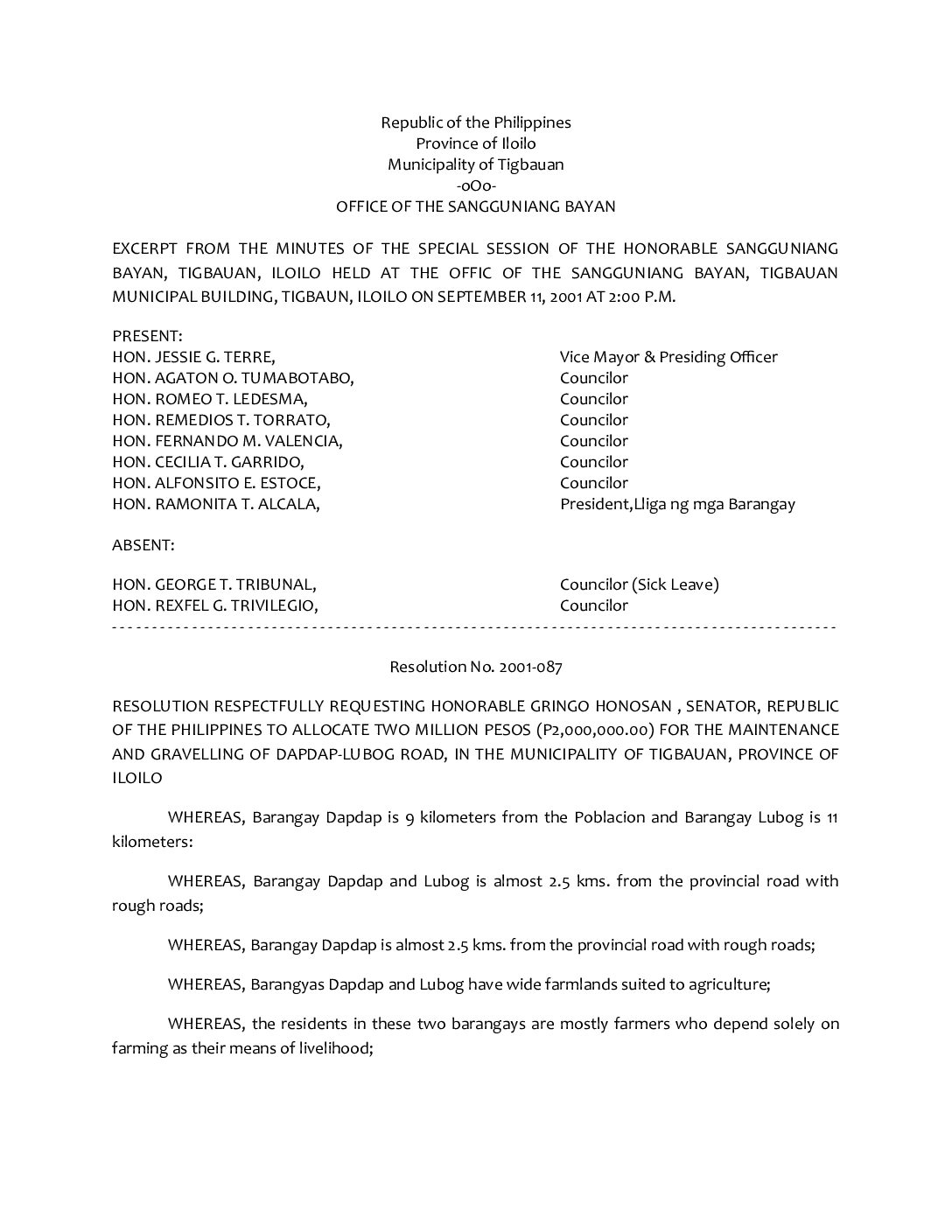 Resolution No. 2001-087