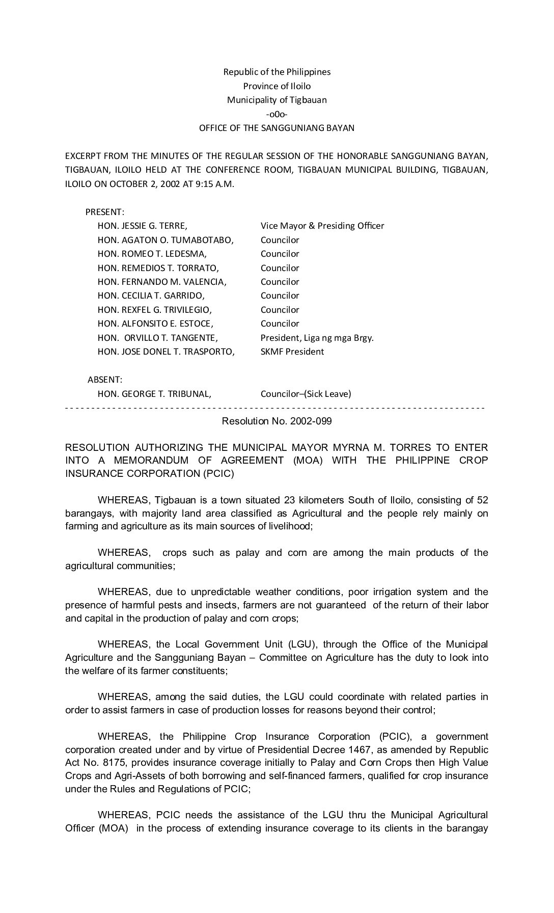 Resolution No. 2002-099