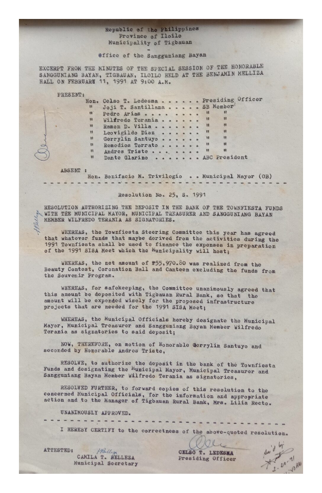 Resolution No. 91-025