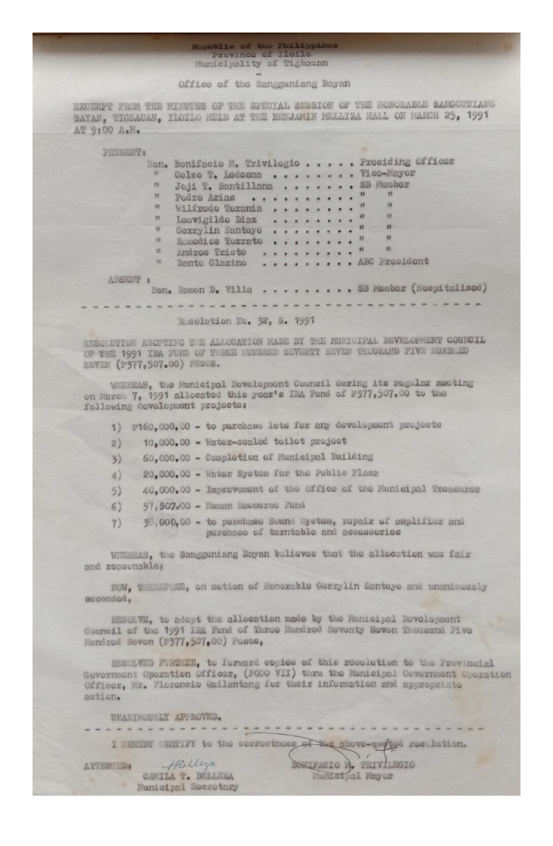 Resolution No. 91-032