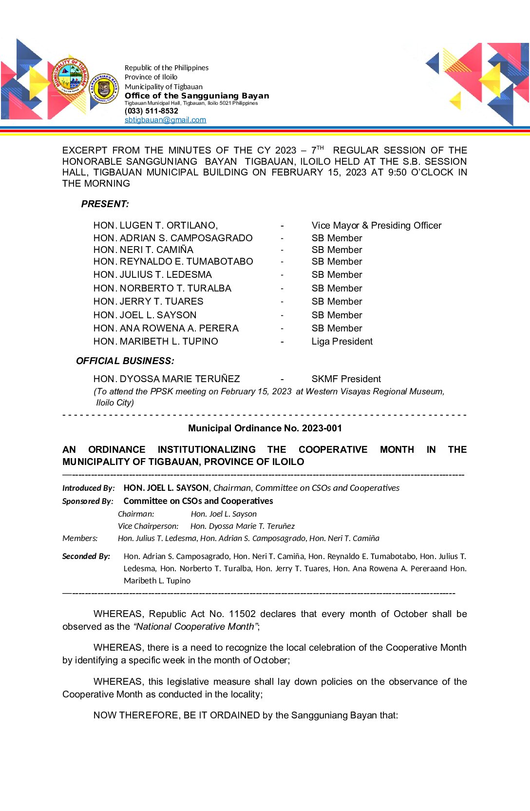 Municipal Ordinance No. 2023-001
