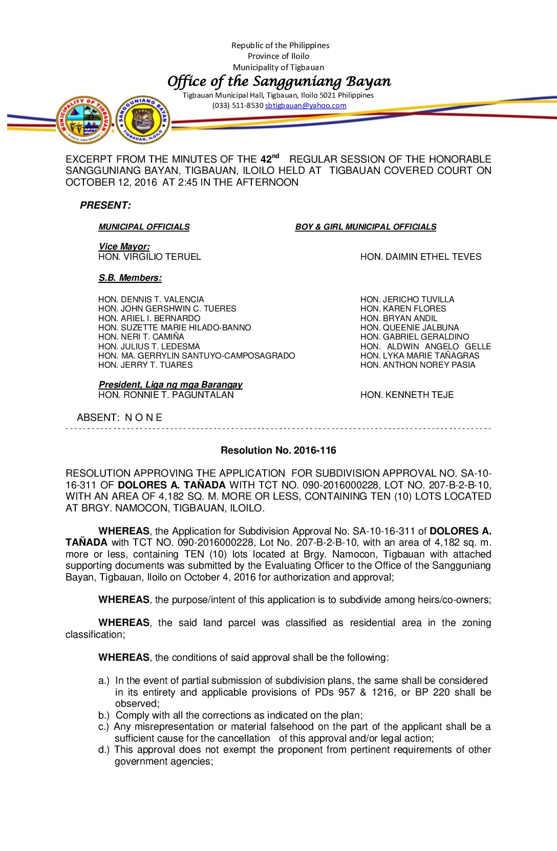 Resolution No. 2016-116