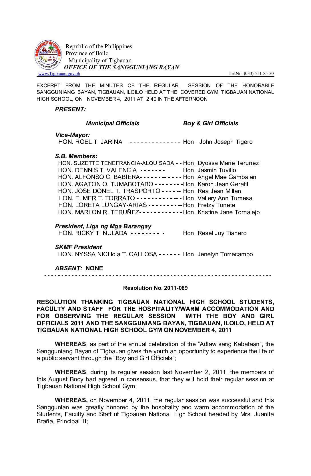 Resolution No. 2011-089