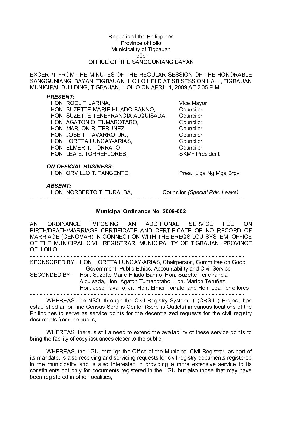 Municipal Ordinance No. 2009-002