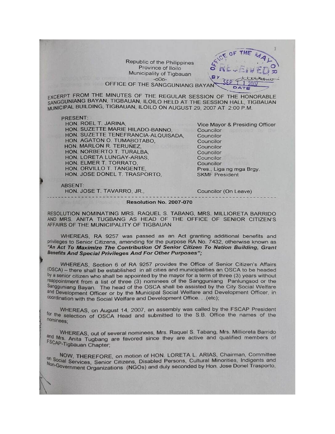 Resolution No. 2007-070