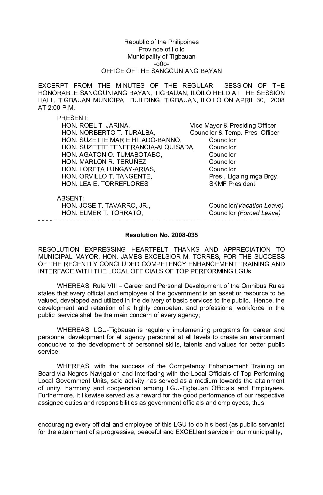 Resolution No. 2008-035