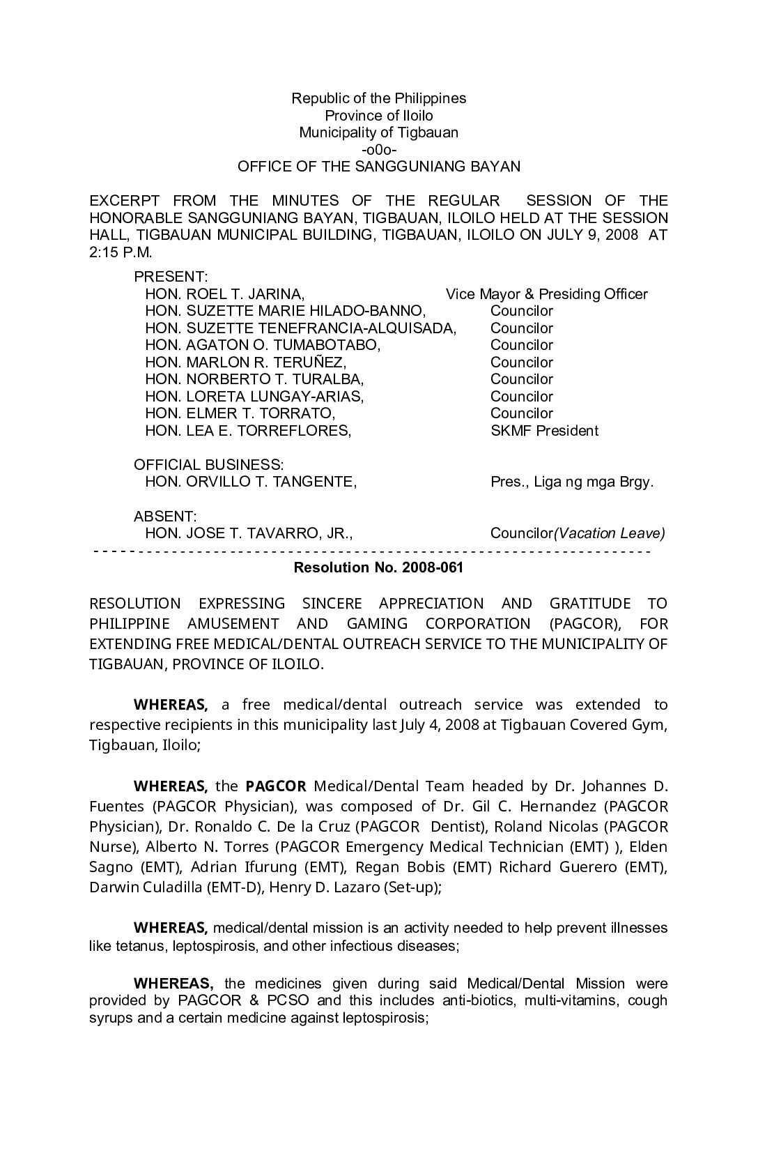 Resolution No. 2008-061