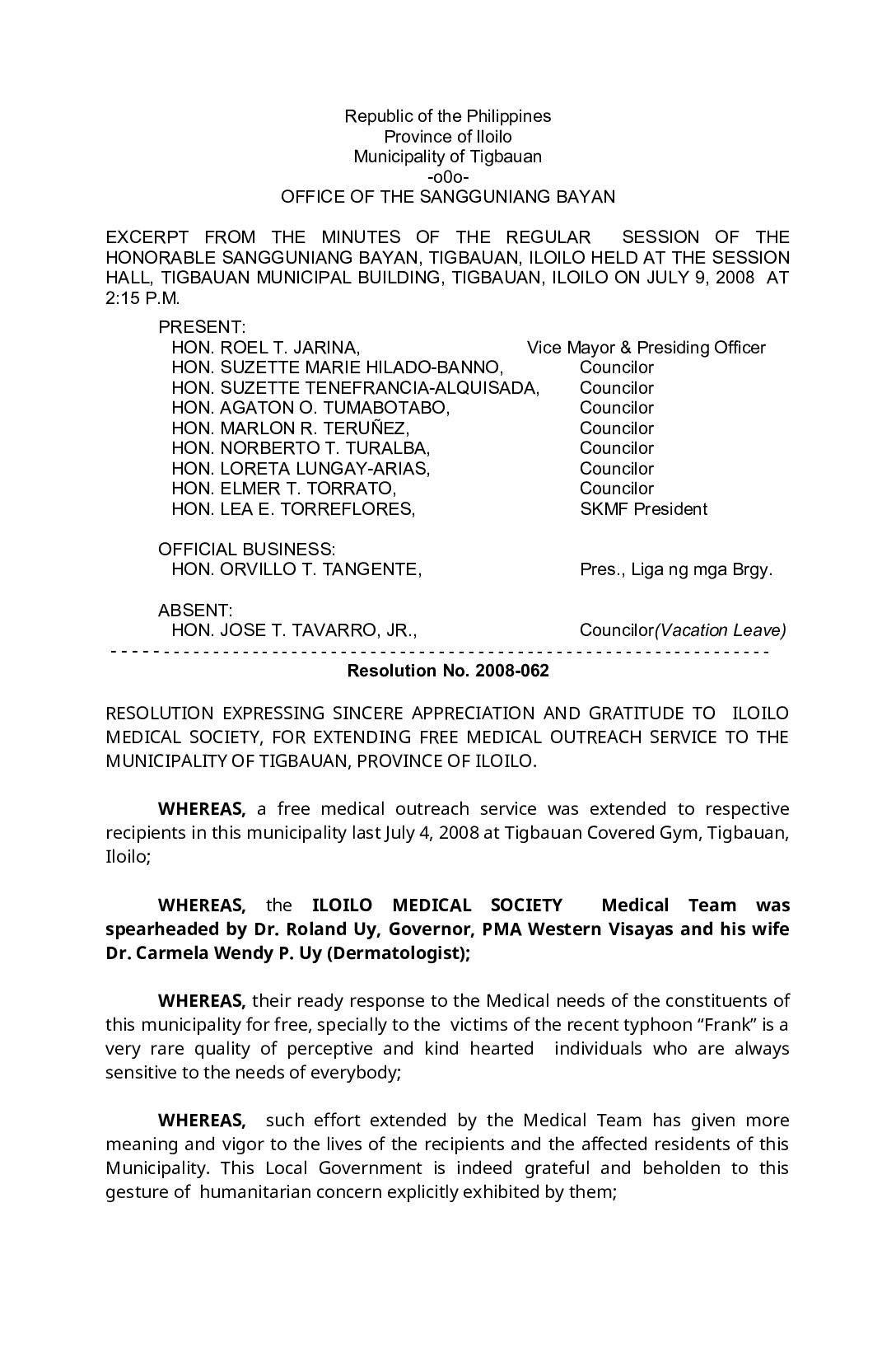 Resolution No. 2008-062