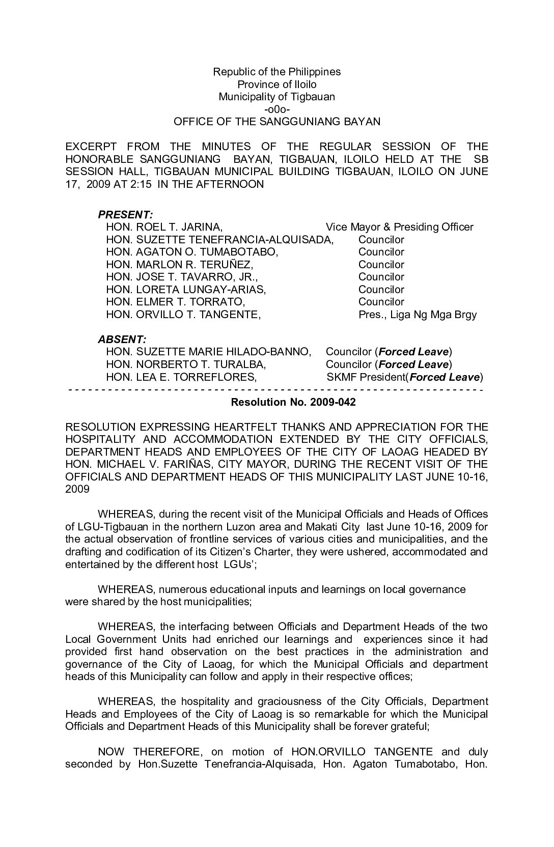 Resolution No. 2009-042