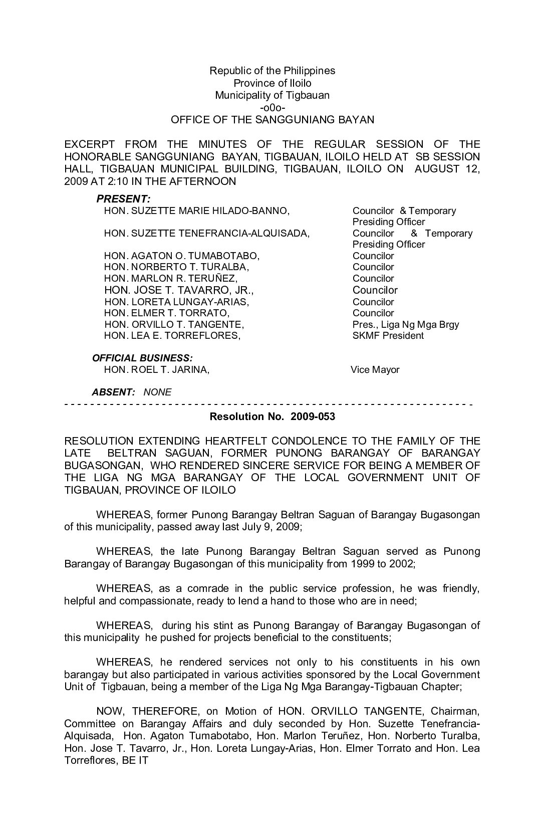 Resolution No. 2009-053