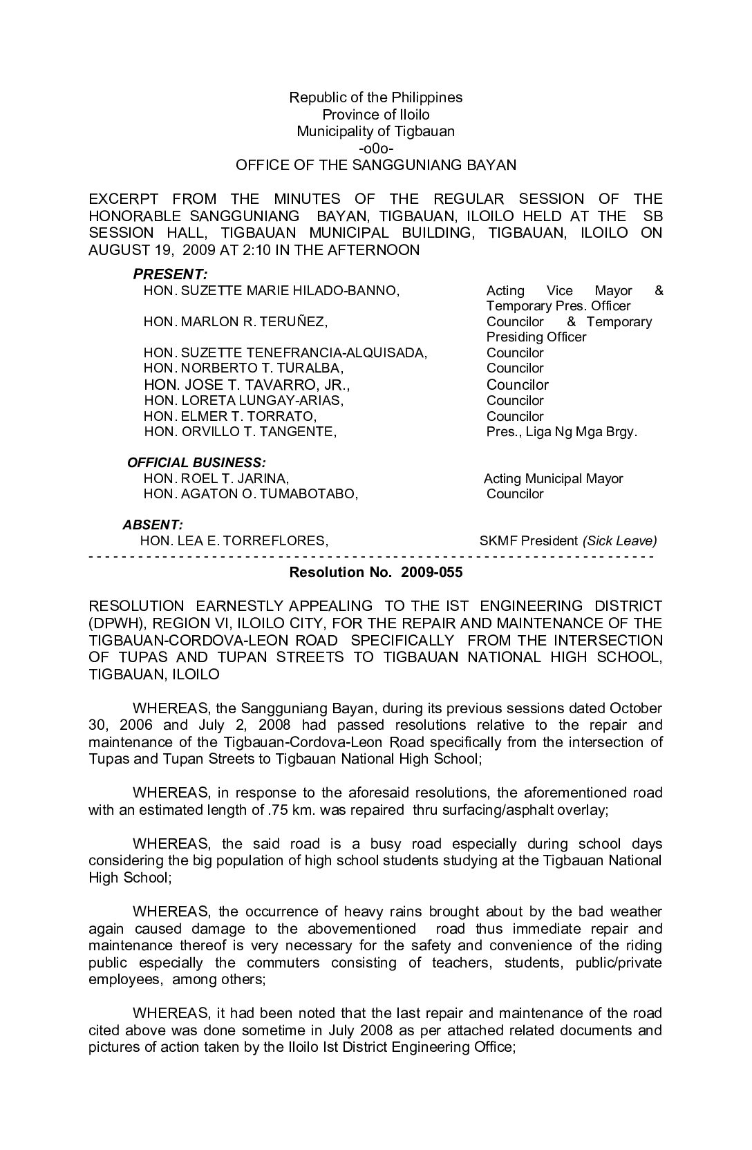 Resolution No. 2009-055