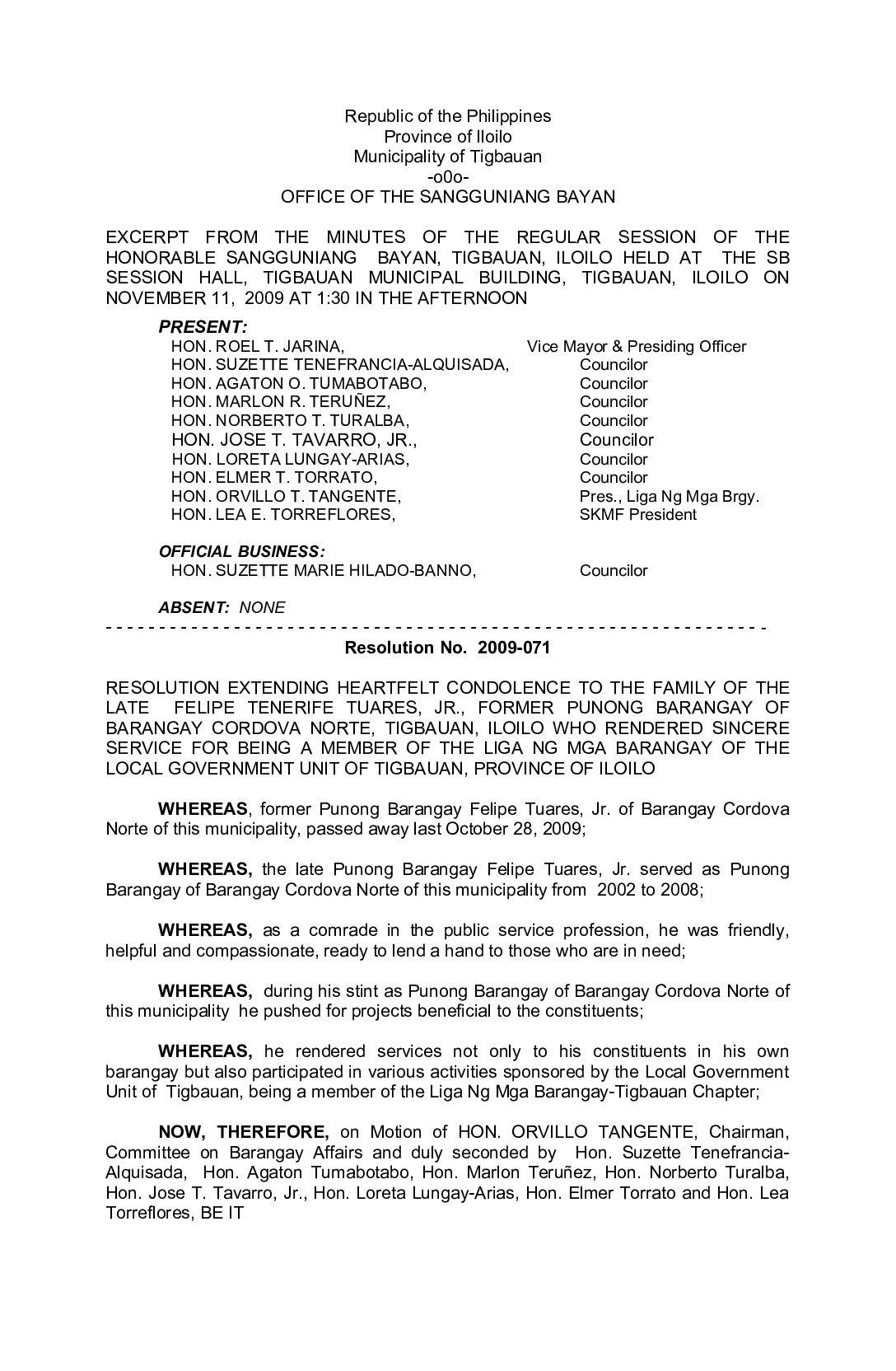 Resolution No. 2009-071