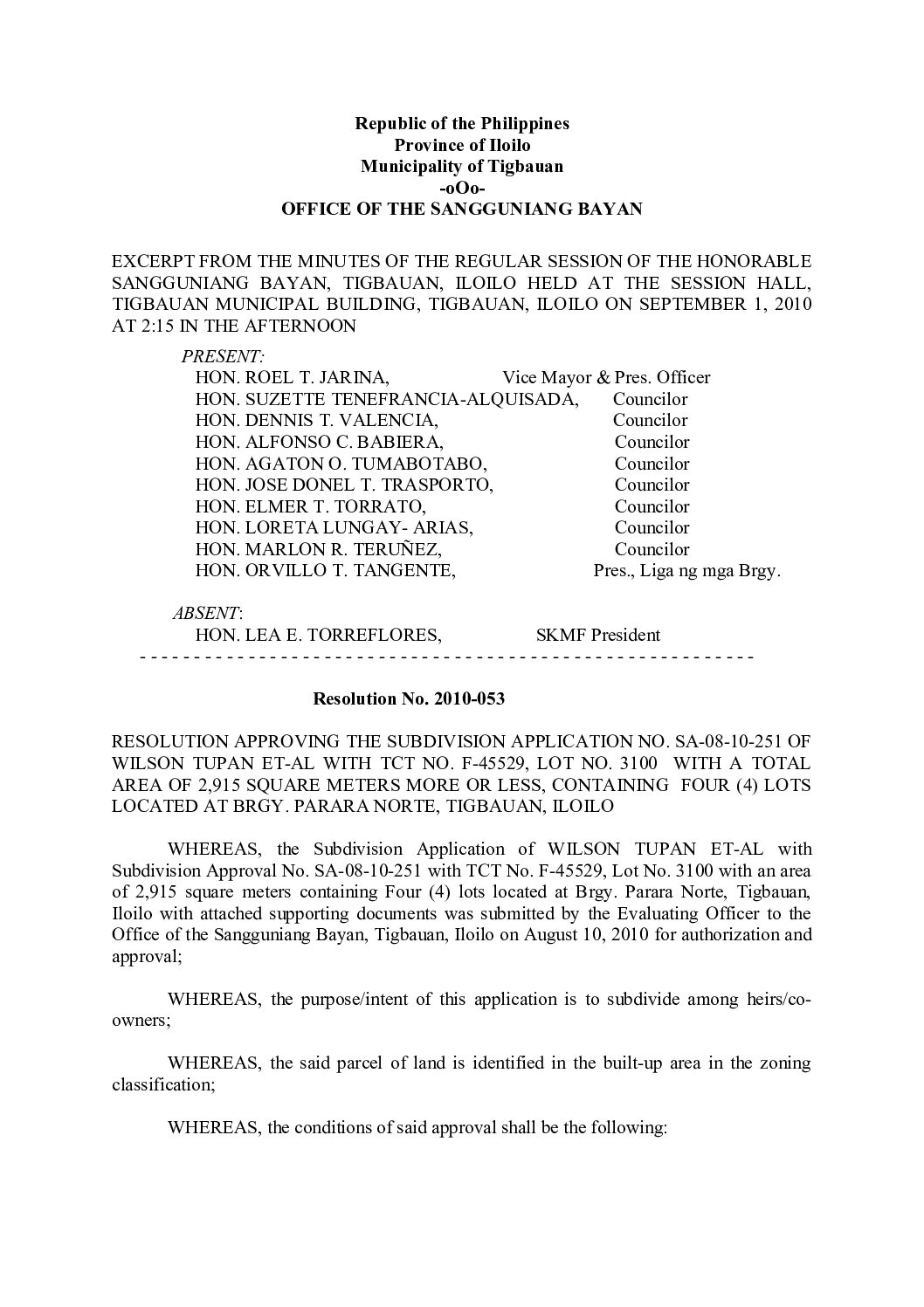 Resolution No. 2010-053