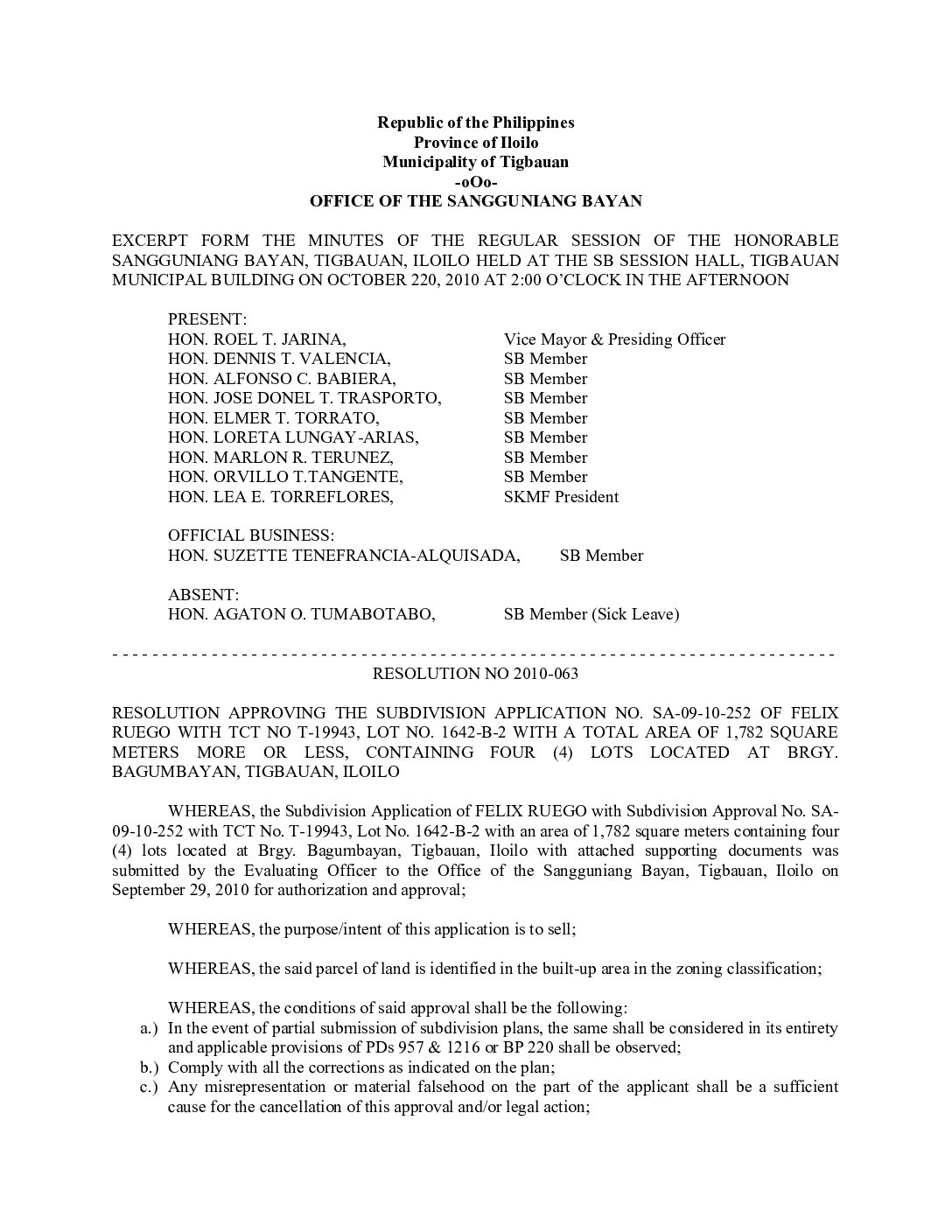Resolution No. 2010-063