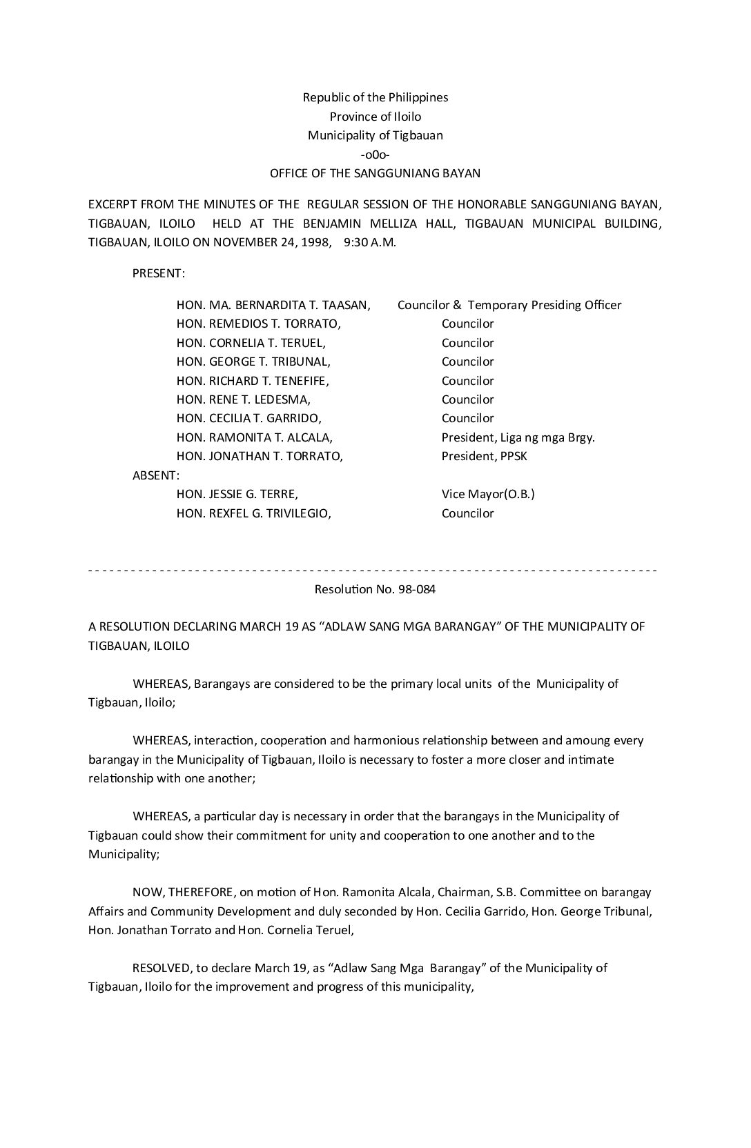 Resolution No. 98-084