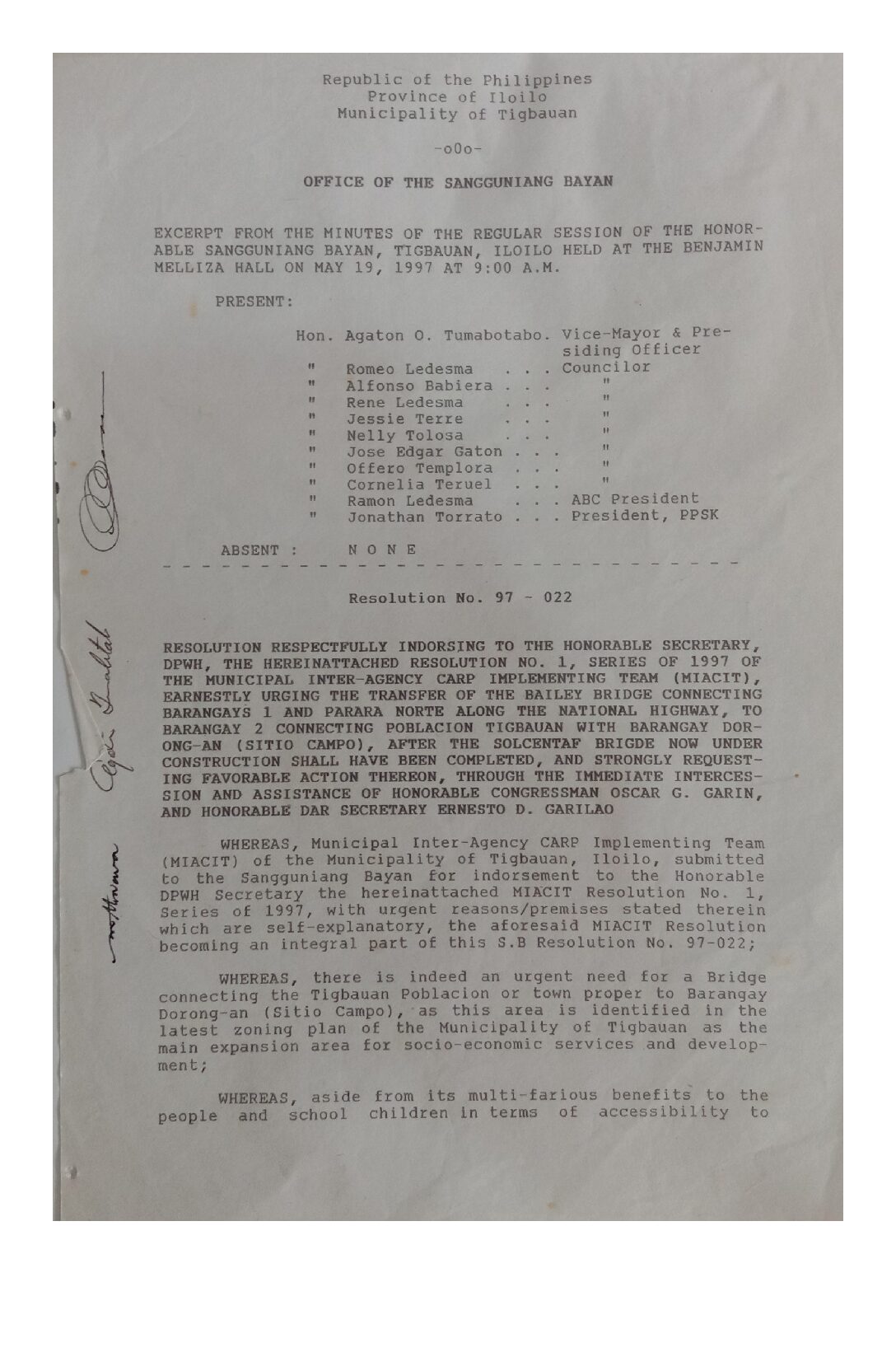 Resolution No. 97-022