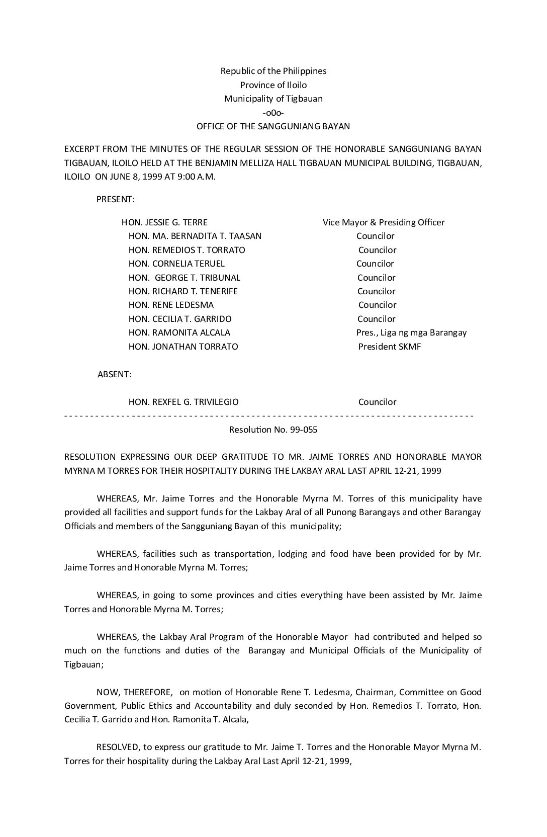 Resolution No. 99-055