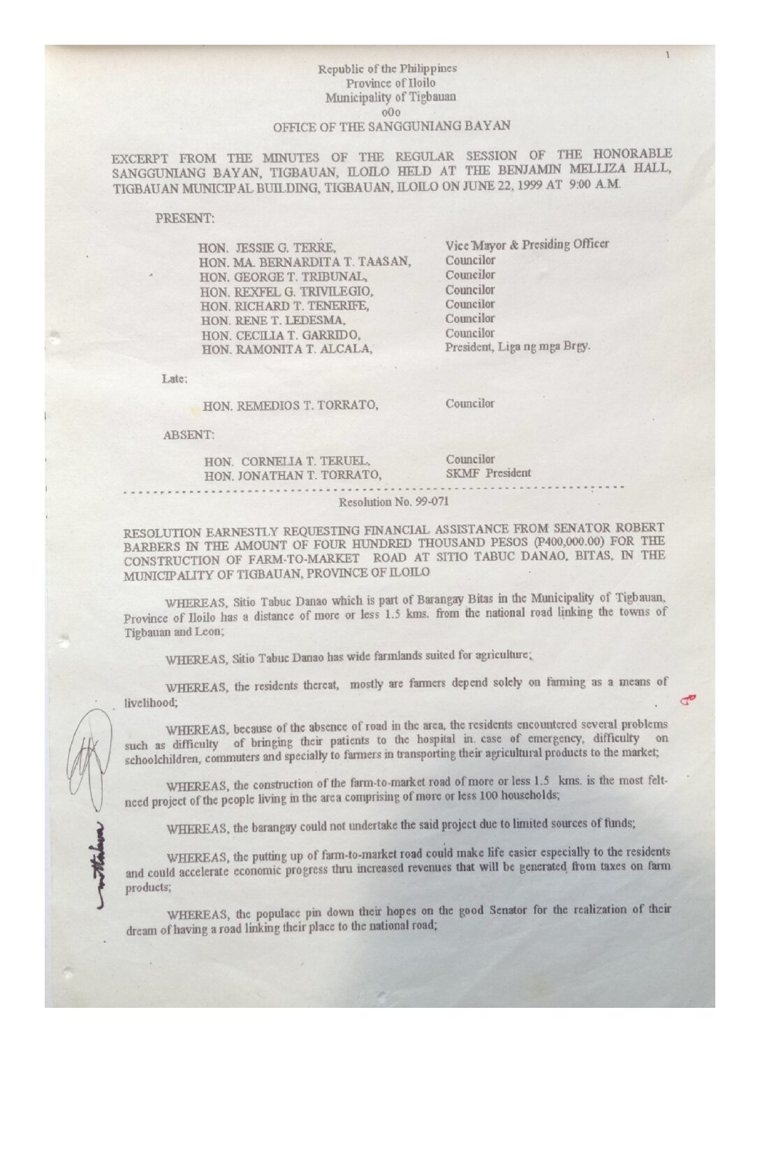 Resolution No. 99-071