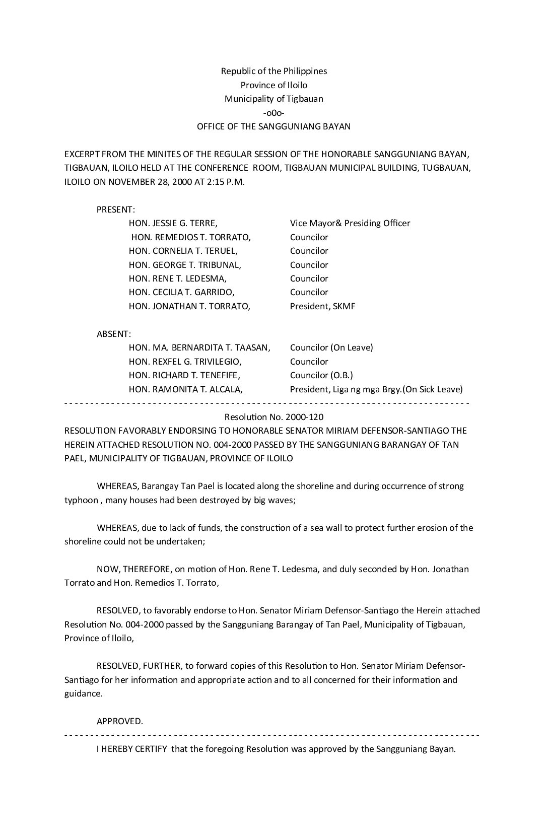 Resolution No. 2000-120