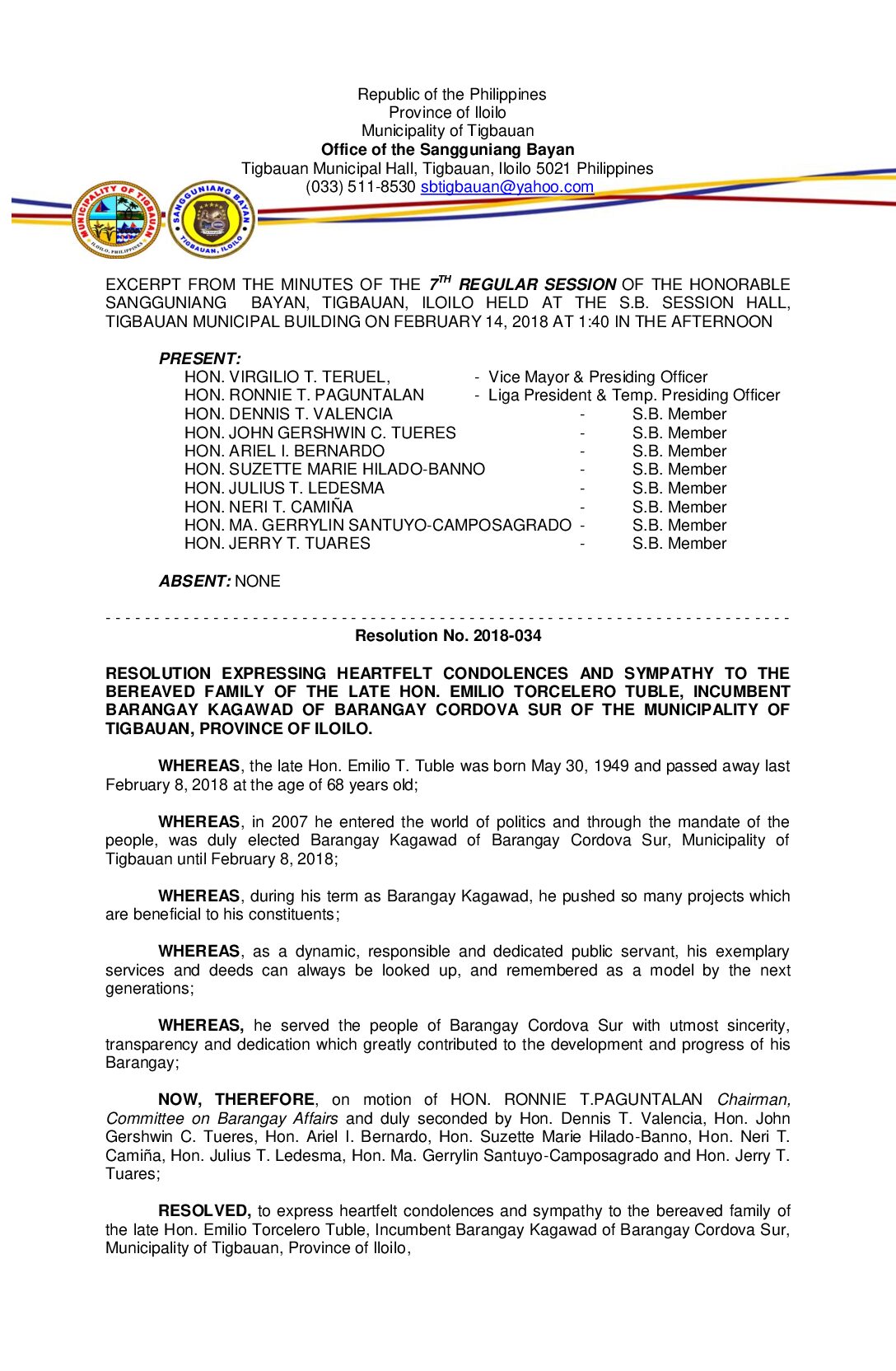 Resolution No. 2018-034