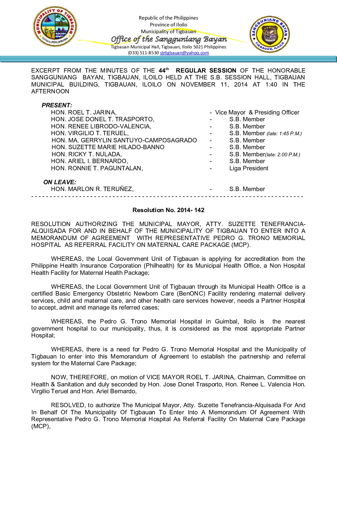 Resolution No. 2014-142