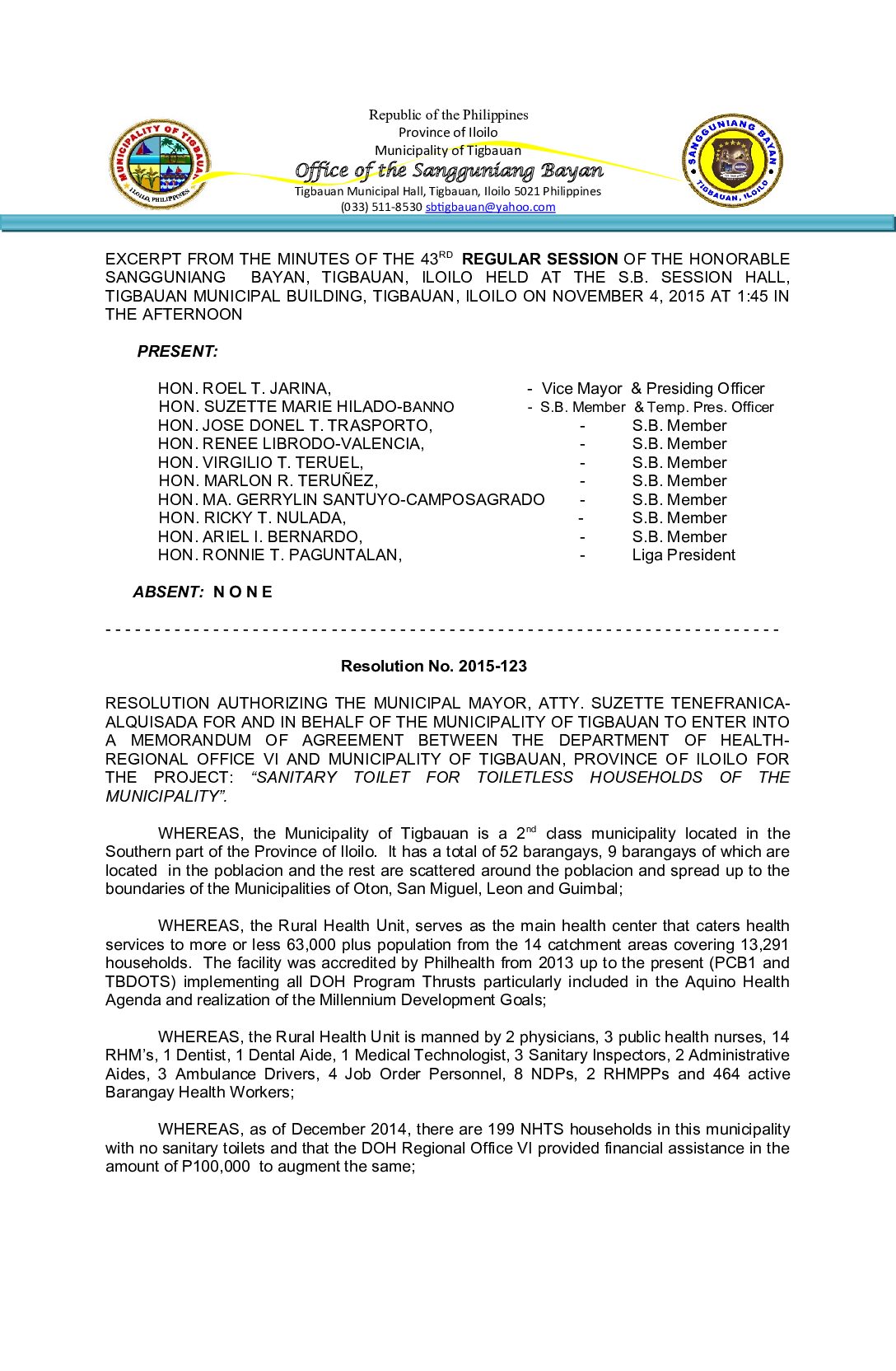 Resolution No. 2015-123