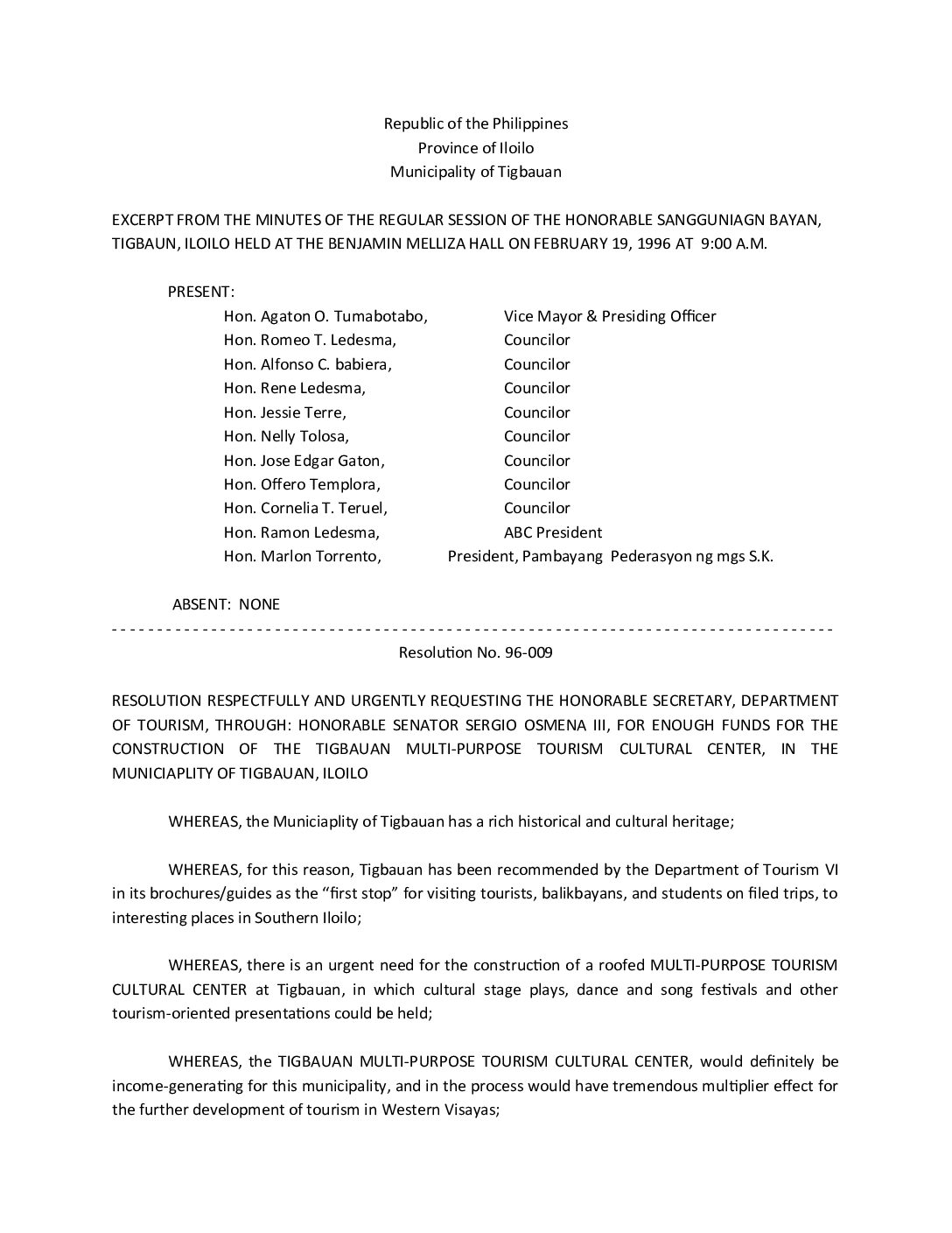 Resolution No. 96-009