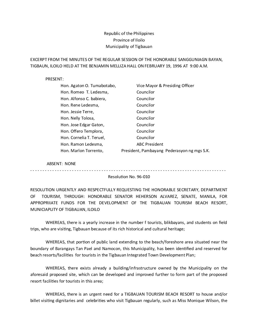 Resolution No. 96-010