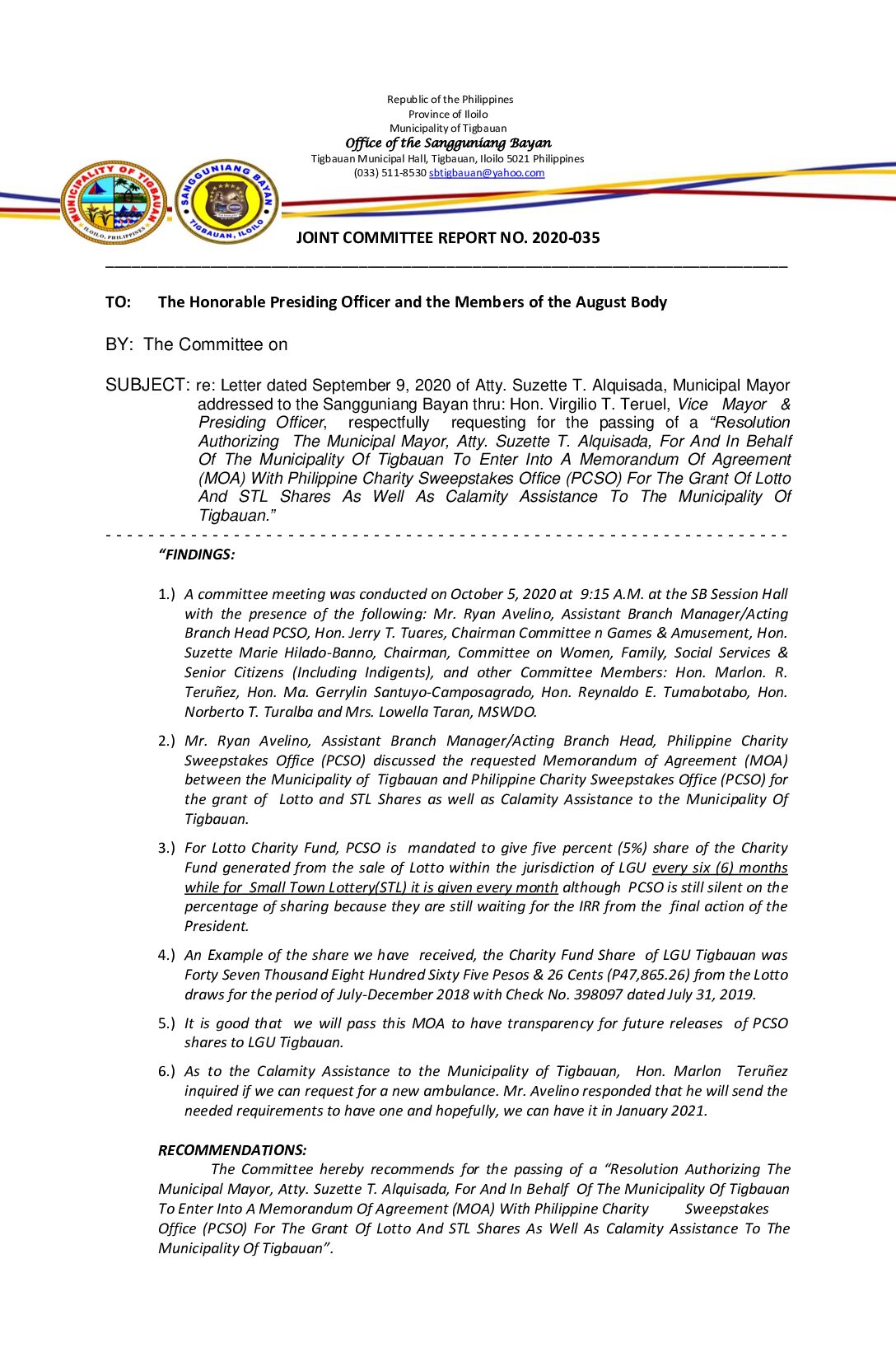 COMMITTEE REPORT NO. 2020-035