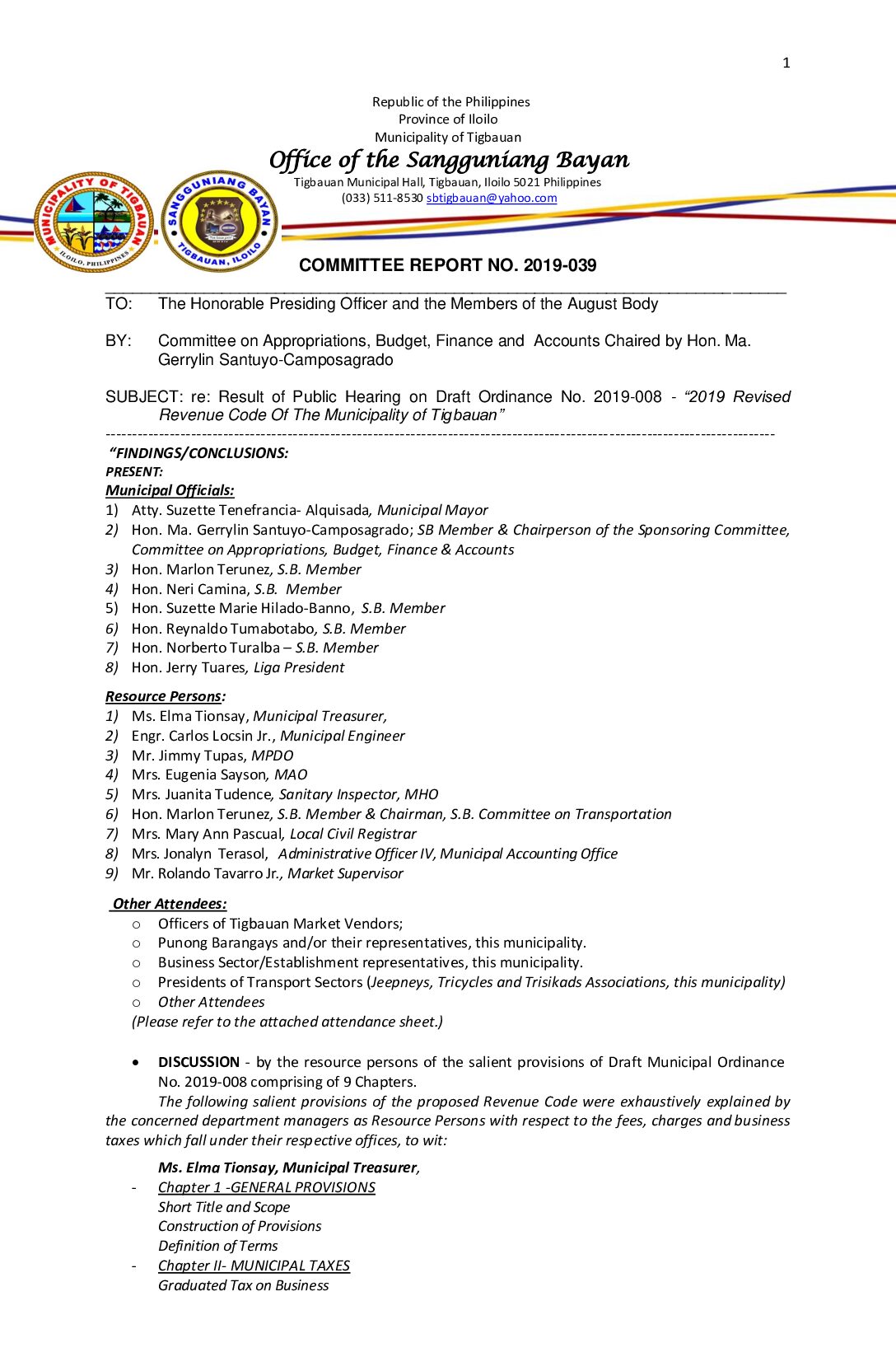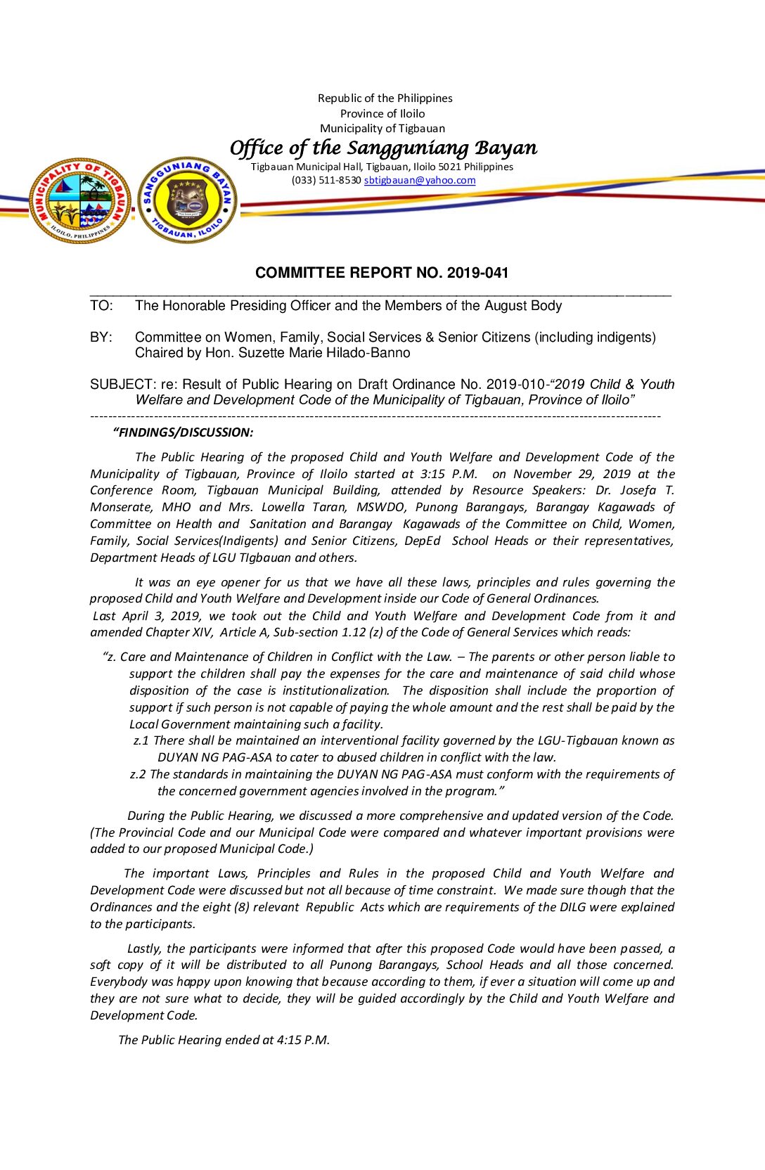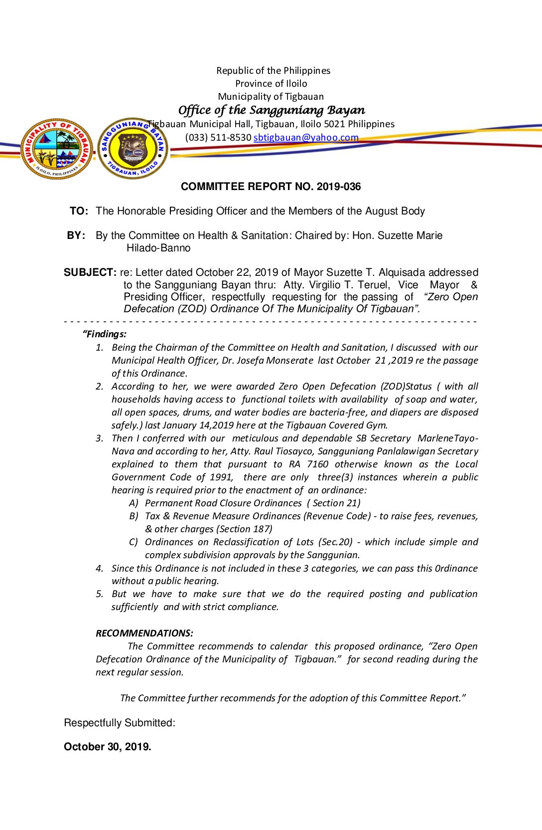 COMMITTEE REPORT NO. 2019-036
