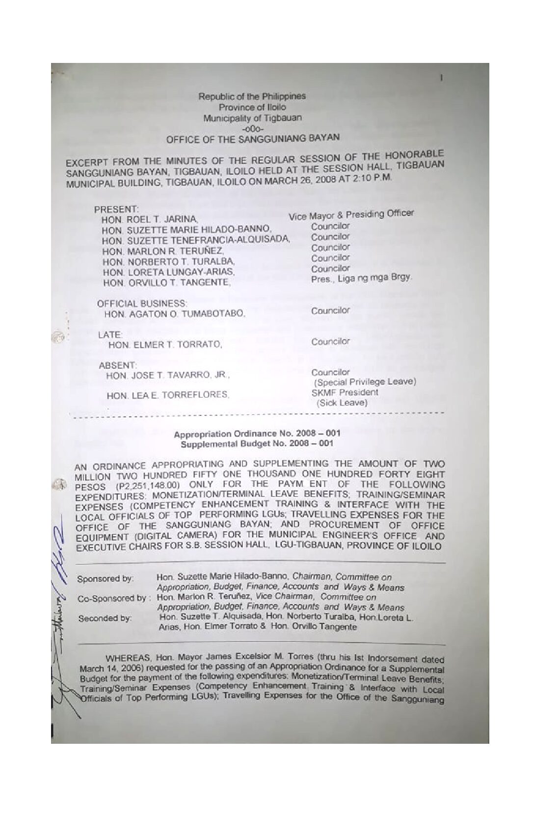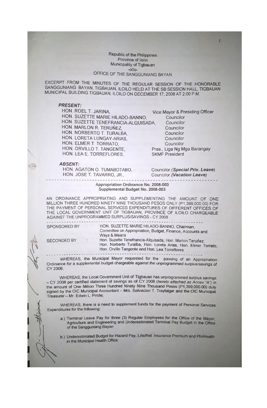 Appropriation Ordinance No. 2008-003