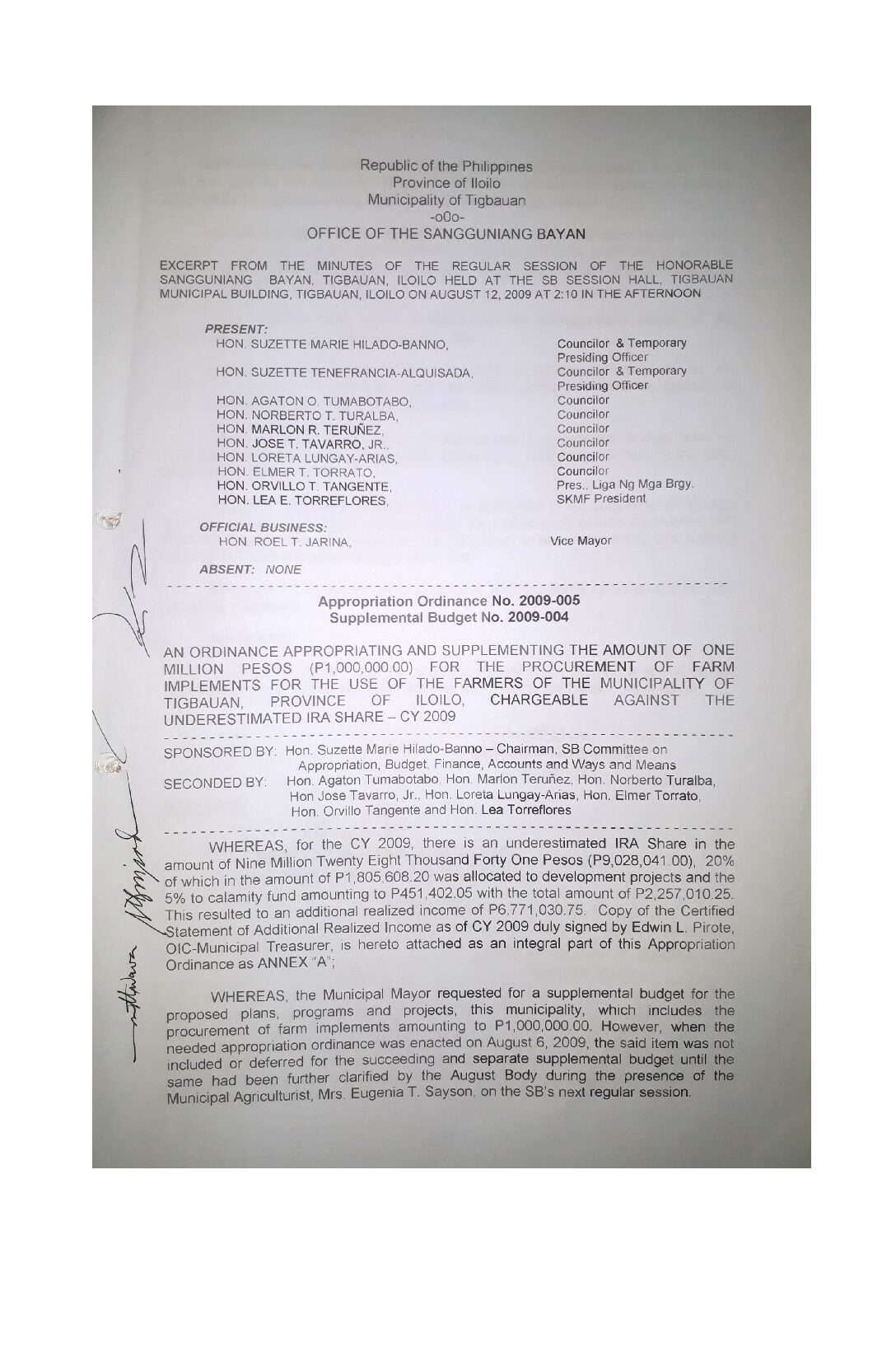 Appropriation Ordinance No. 2009-004