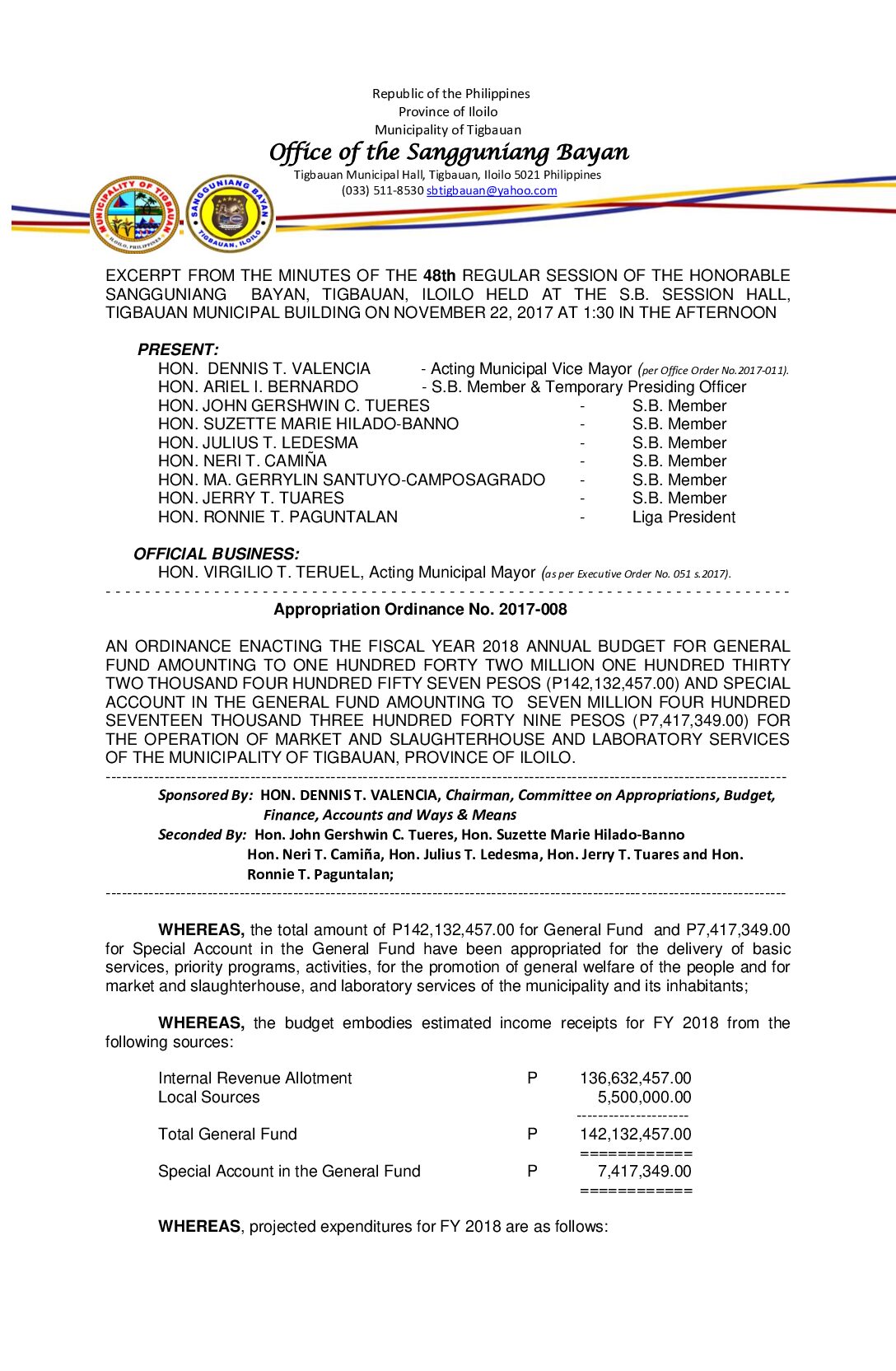 Appropriation Ordinance No. 2017-008