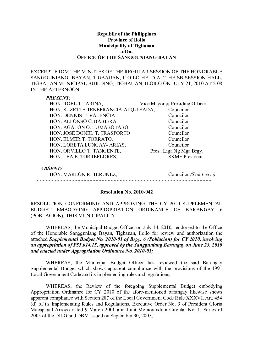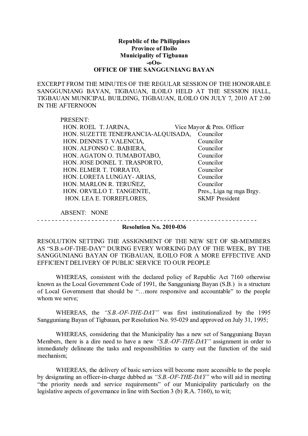Resolution No. 2010-036