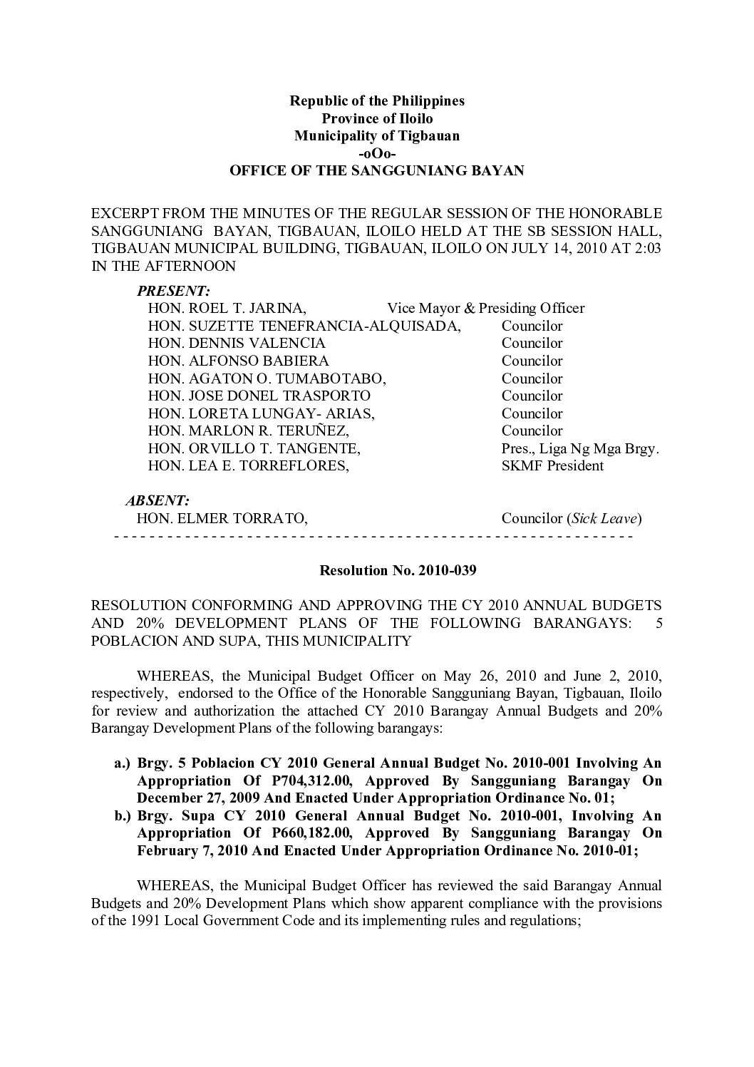 Resolution No. 2010-039