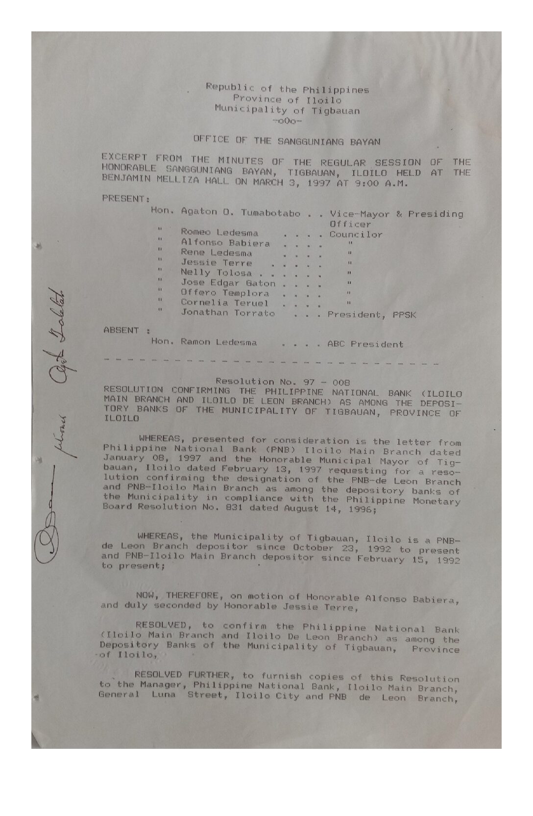 Resolution No. 97-008