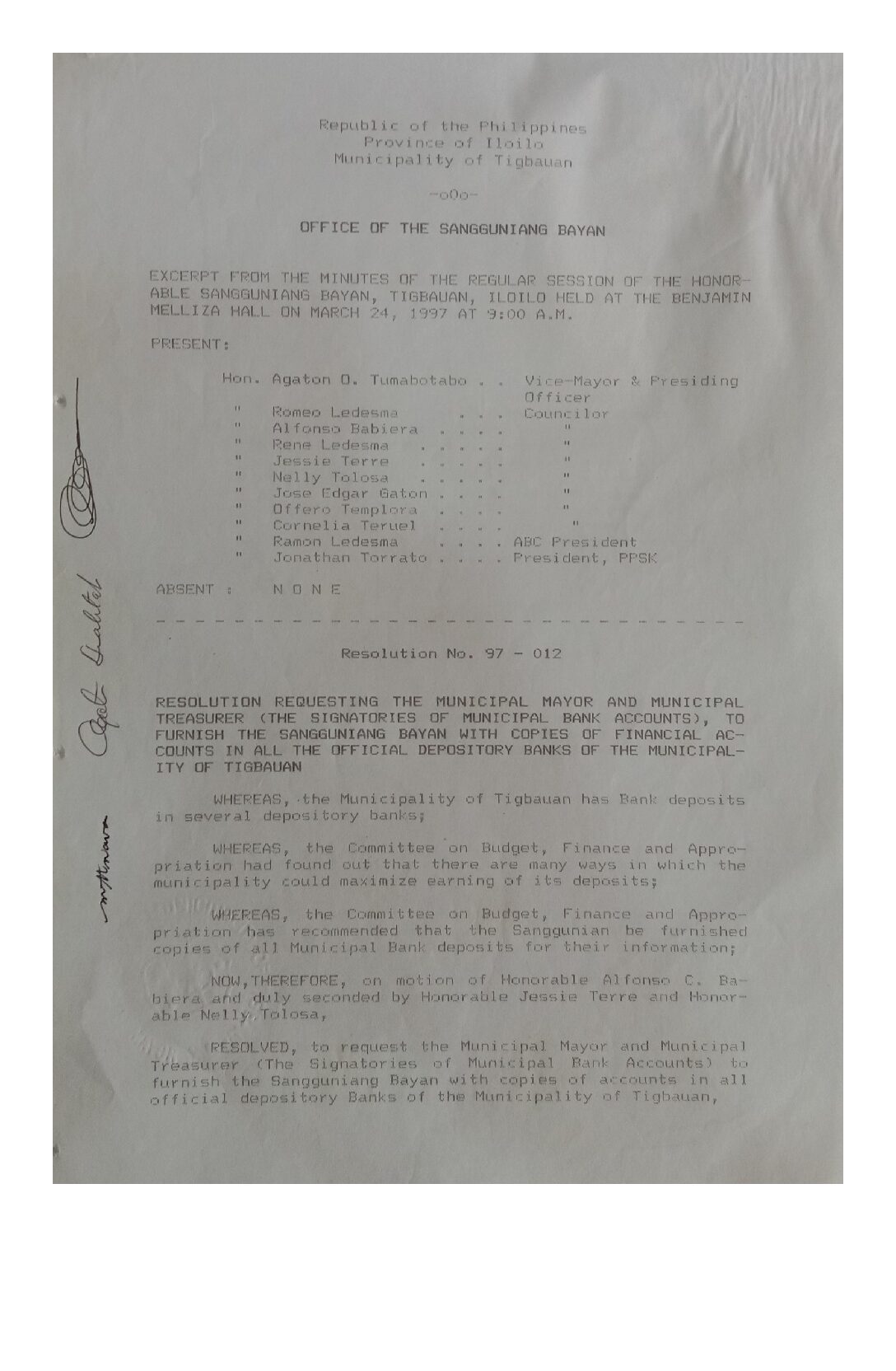 Resolution No. 97-012